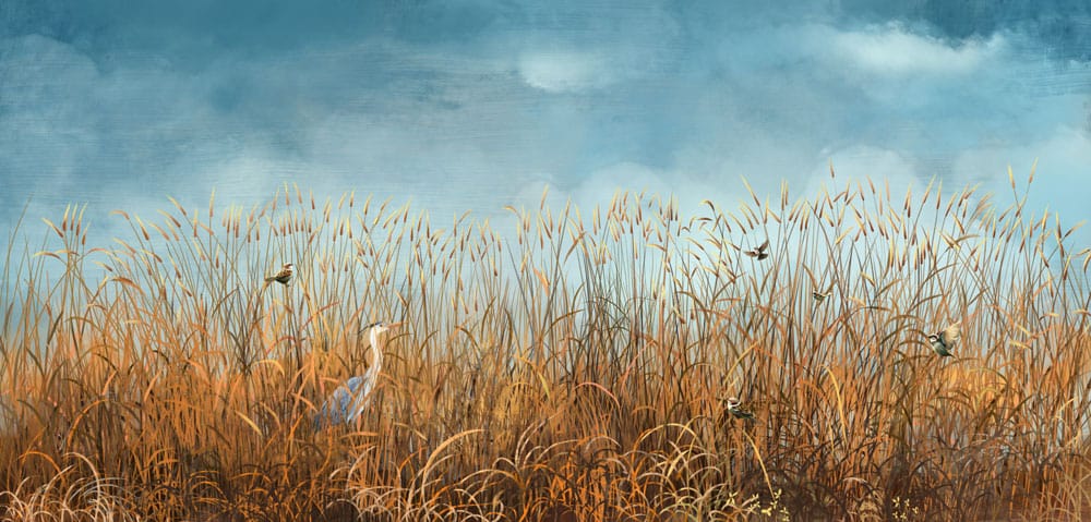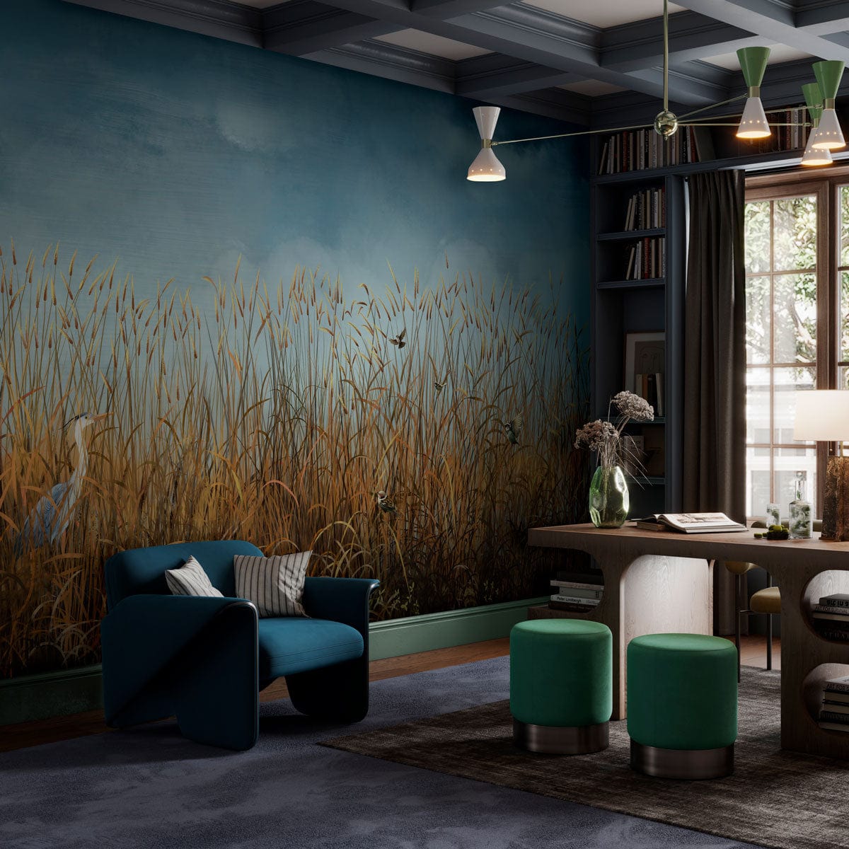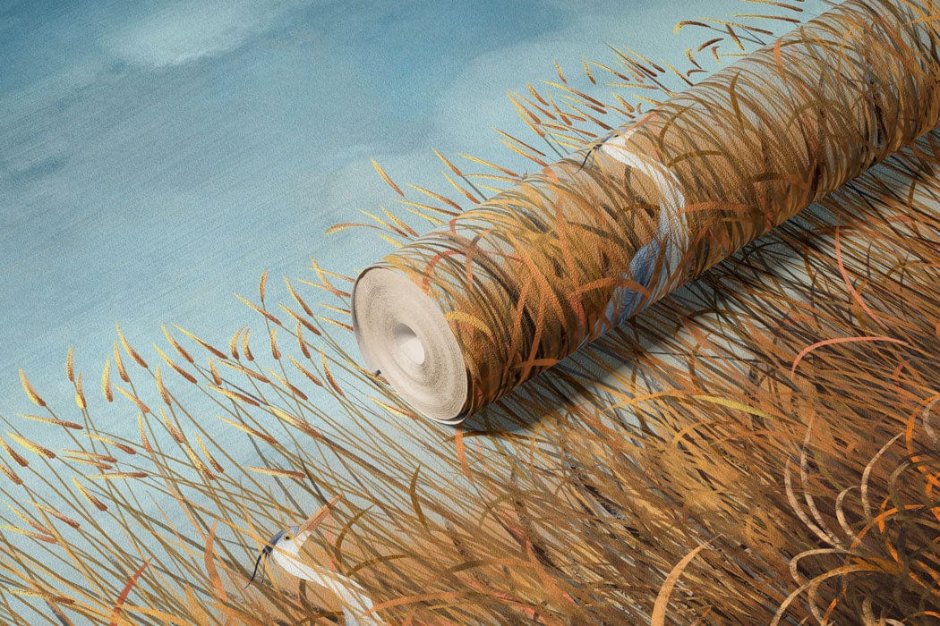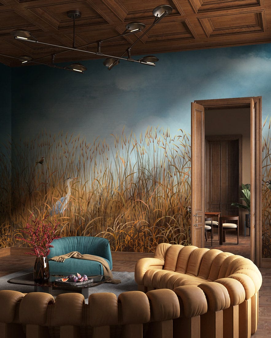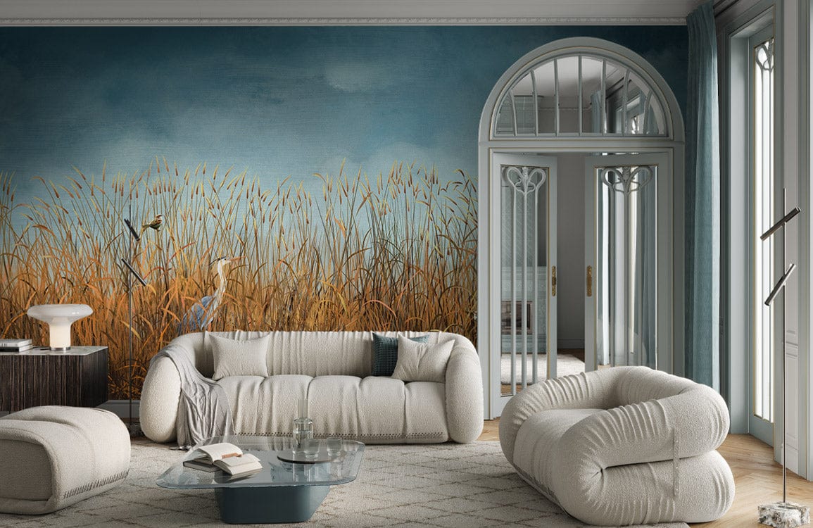 Immerse yourself in the serene beauty of the Tranquil Reeds Nature Landscape Mural. This exquisite piece captures the gentle sway of golden reeds against a backdrop of a tranquil sky, while delicately placed birds add layers of subtle intrigue. The mural's intricate detailing and lush textures evoke a sophisticated atmosphere, making it an impeccable choice for elevating interior aesthetics across diverse settings.