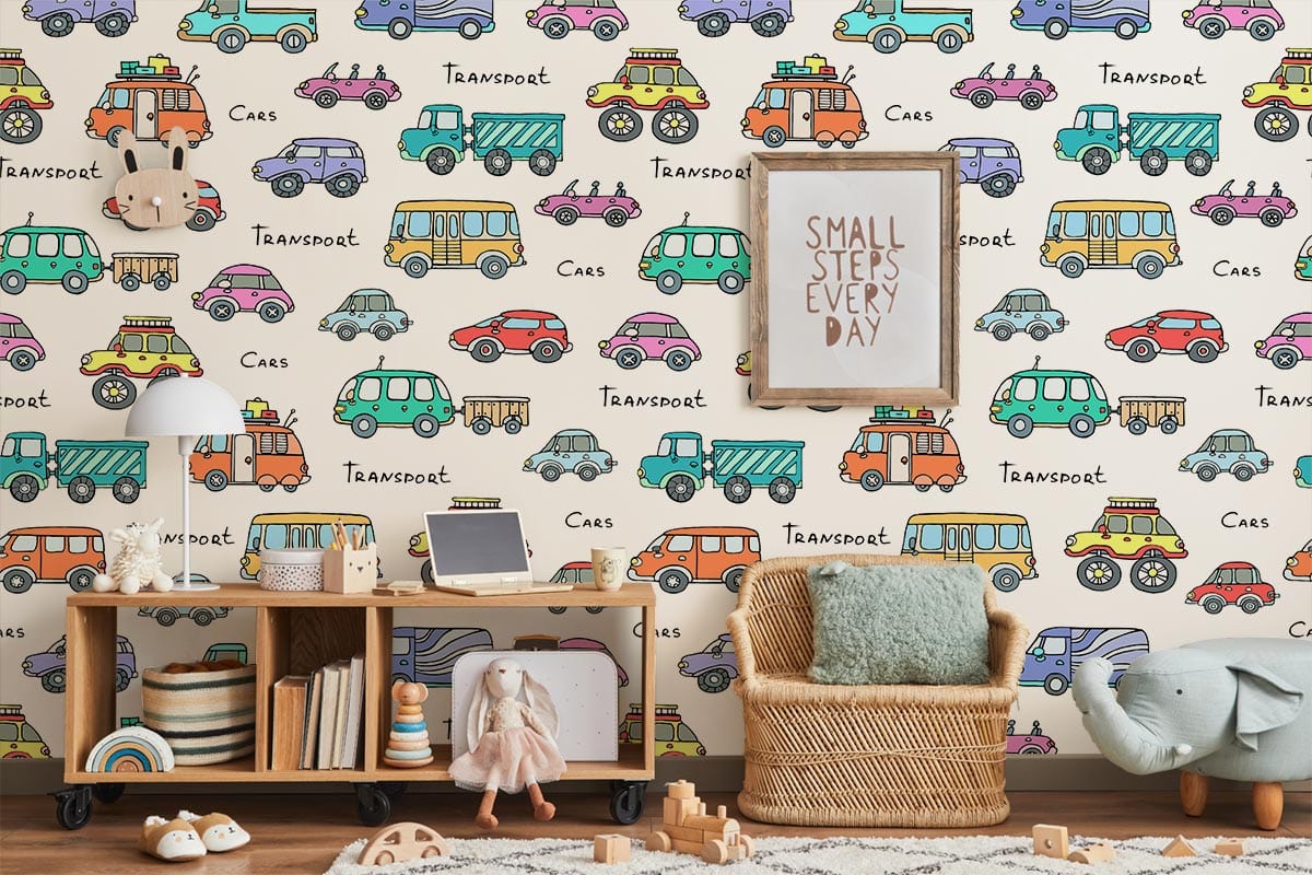 Introduce your kids to the transportation methods and enhance their knowledge with our illustrative mural wallpapers collection. A colourful wallpaper for those boys and kids who love playing with cars and love cars and trucks. This design is one of our illustrative designs that has different types of vehicles. Explain and help to enhance your kids鈥?knowledge and let them know the name of each vehicle and tell them facts and stories about each transportation type. This simple design is so prefect for your boys鈥?room with off-white chiffon curtains and black or dark blue carpets for a nice contrast and for non-boring boys鈥?room.