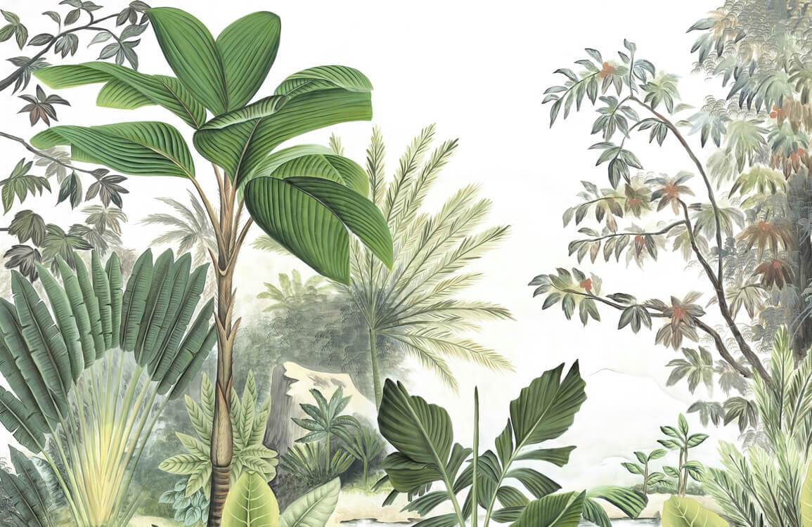 Add a splash of green to your interiors with this hand-painted forest wallpaper mural. Embrace nature with these green trees and plants. Perfect wall mural to reduce your stress and tiredness after a long day of work or study. Ideal for bedrooms and living rooms, sure to surround you with natural warm vibes.