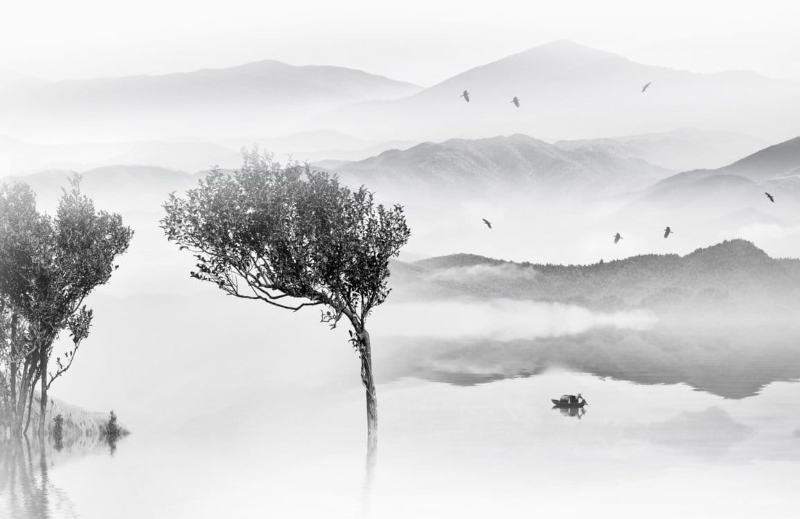 Give your home a new lease of life with this stunning trees and birds wallpaper. Bring an peaceful feel into your home. With stunning shades of boat, forest and birds, this beautiful lake wallpaper will add a sense of calm as well as colour into your home. We adore how the trees reflect in the serene lake隆炉s waters隆颅