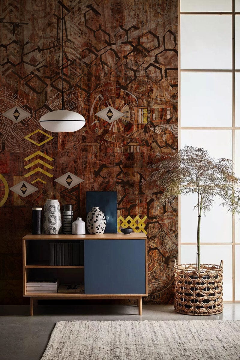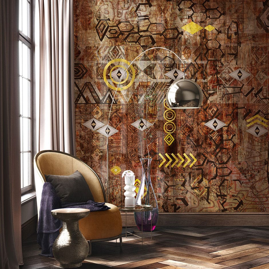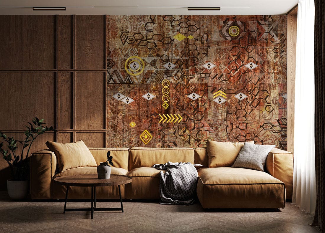 Discover the rich tapestry of the Tribal Fusion Mural Wallpaper, where intricate geometric patterns and warm earthy hues meet in a harmonious blend. This sophisticated design introduces a captivating narrative to any space, with its textured layers that echo an artisanal craftsmanship. Perfectly suited to diverse environments, it enhances living rooms, bedrooms, and offices with its unique cultural resonance and artistic complexity.