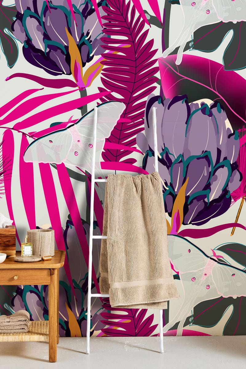 Immerse your interior in a lush oasis with the Tropical Paradise Escape Mural Wallpaper. This captivating design features bold foliage and exotic blooms that evoke a sense of serene sophistication. The vibrant interplay of colour and texture brings an artistic flair to any setting, ideal for those seeking a retreat within their own walls.