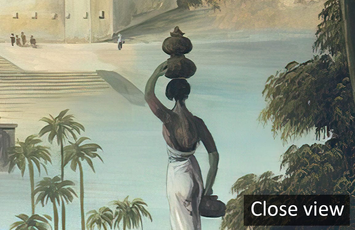 Get a tropical look to your interiors with this river and house wallpaper mural. The palm trees and the houses on the other side of the river gives a magical 3D effect and adds depth to your space making it look dramatically larger. Perfect wall mural for your living room, dining area and hallway.