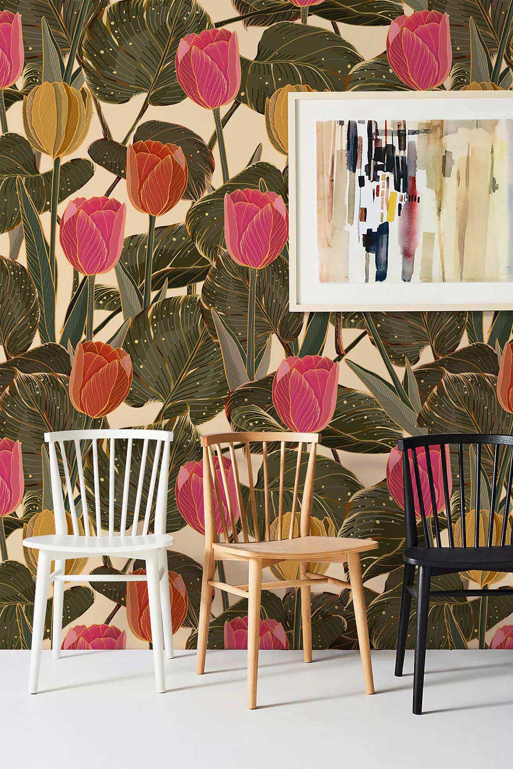 Attract attention to your walls with this floral wallpaper. The focus of this design is on pretty yellow, orange, and pink blooms brightly displayed in this mural. The gorgeous detail and colourful tones will be sure to brighten any room, especially if you love florals and leaves. Our Tulip Focus Wallpaper Mural is a classic design that will never go out of style, so it is sure to create a beautiful accent on your walls whenever you feel like switching to this tropical wallpaper.