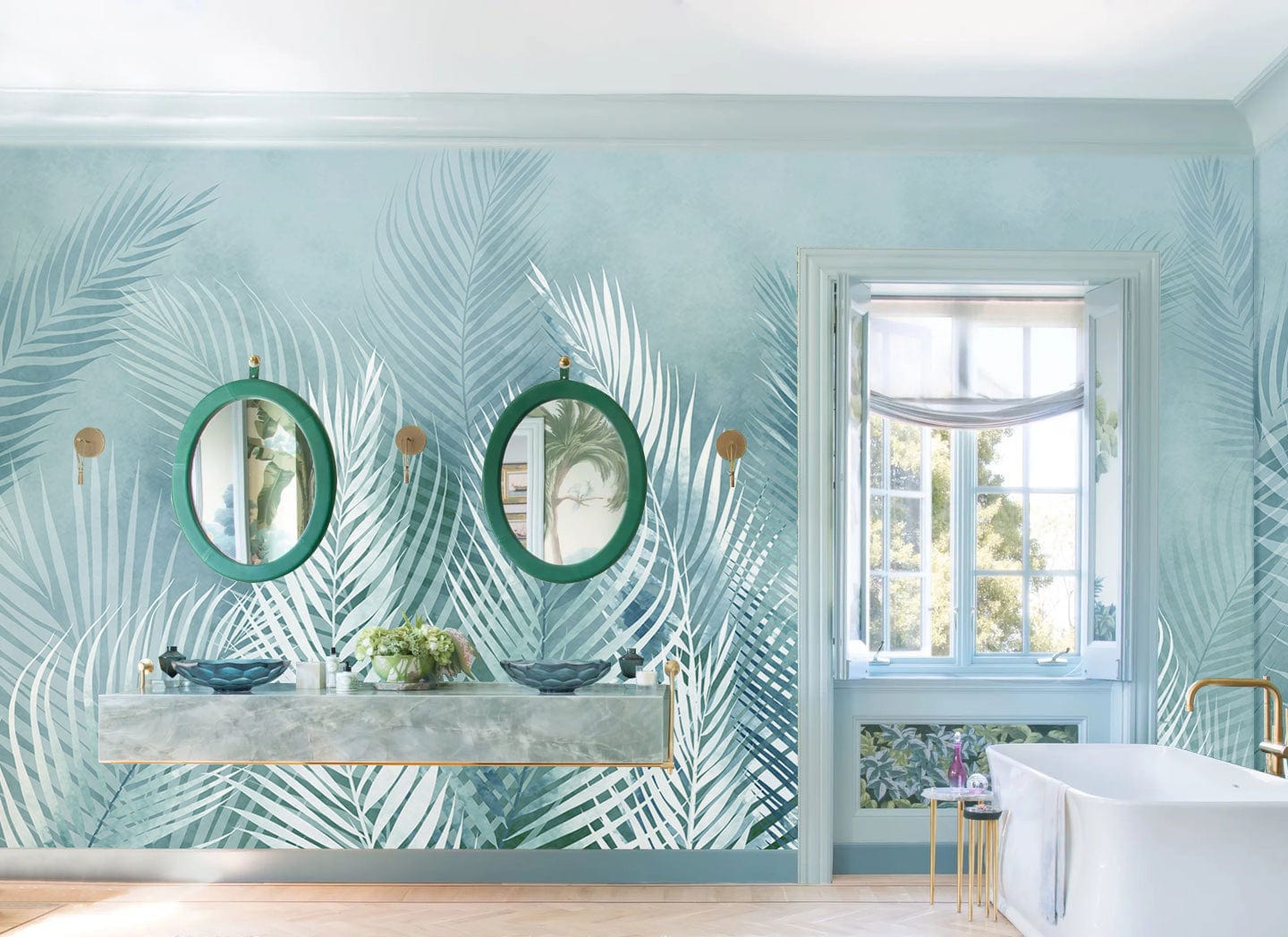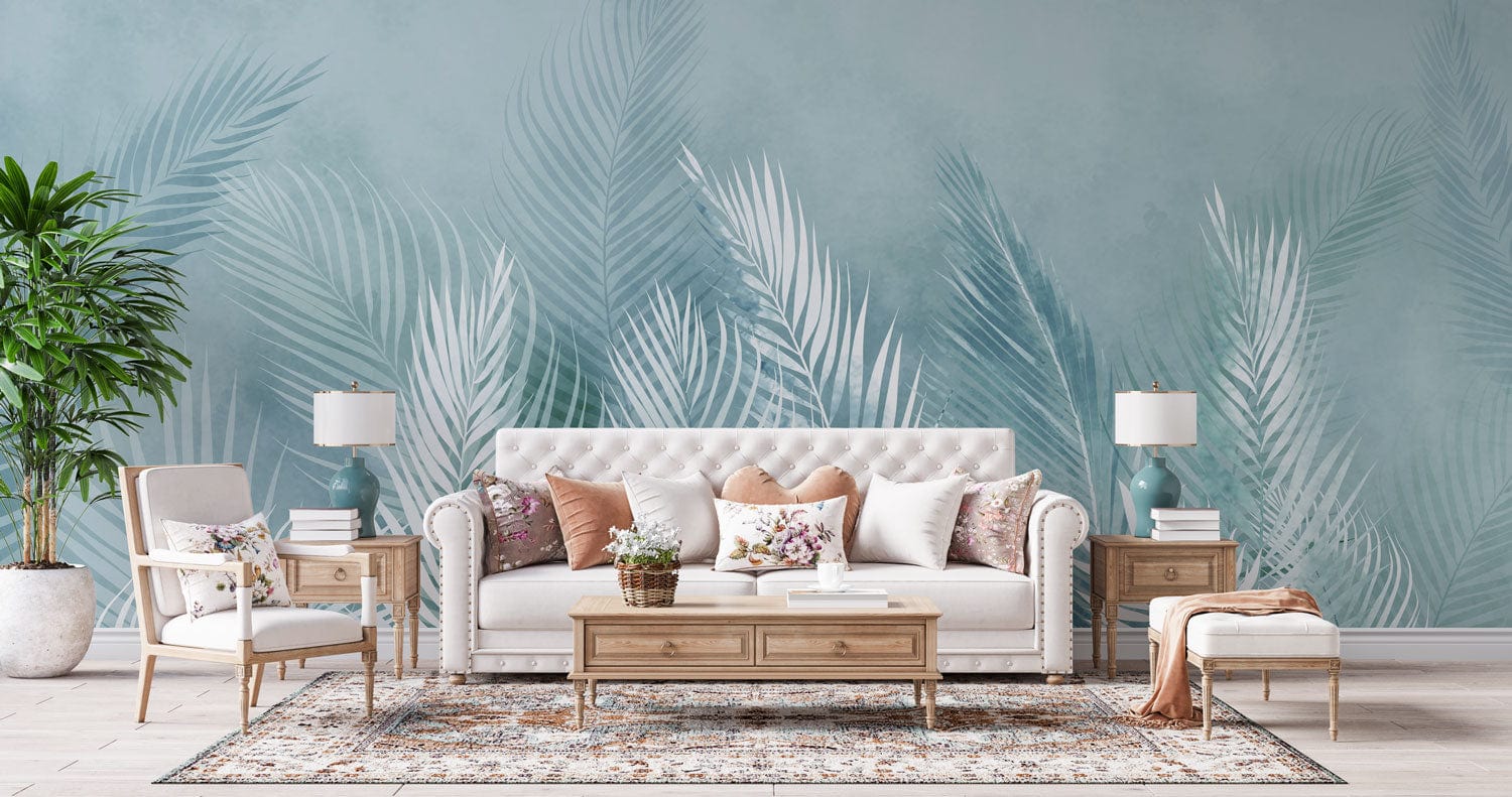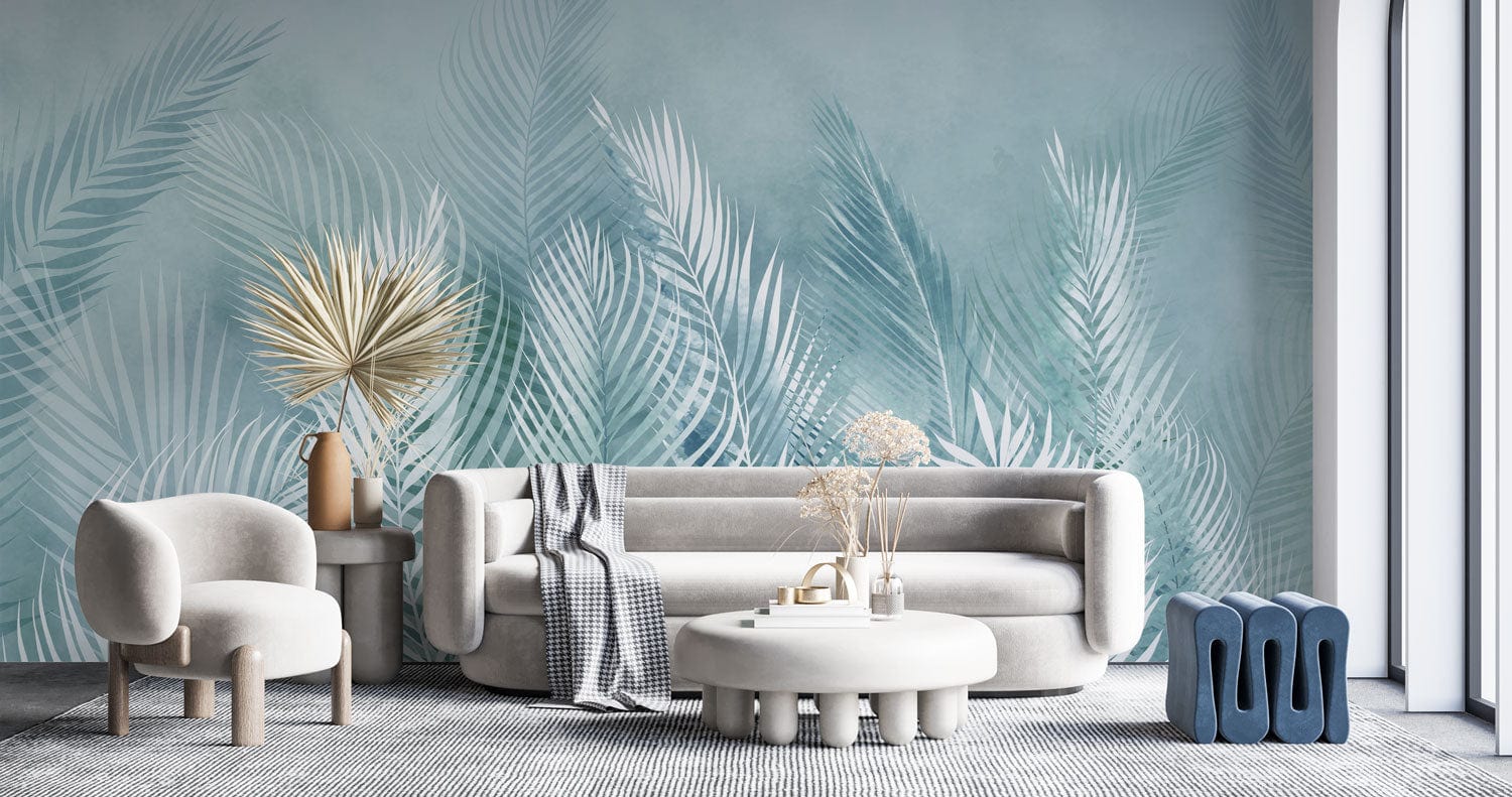Dive into an oasis of tranquility with the Turquoise Feather Leaves Wallpaper Mural. Its intricately detailed leaf patterns, layered in soft shades of turquoise and mint, create an ethereal backdrop that evokes both serenity and sophistication. Perfectly balancing the bold and the subtle, it invites a touch of nature's grace into your interior spaces, whether they lean towards the contemporary or the classic.