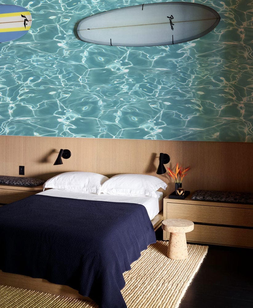 Immerse your space in the serene beauty of the Turquoise Ocean Waves Wallpaper Mural. This exquisite design boasts intricate patterns that mirror the gentle ripples of a sunlit sea. The play of light and shadow across the waves creates a captivating depth, offering a sophisticated touch to any room. Its calming hues bring a touch of nature's elegance into your interiors, making it a perfect backdrop for various settings, from modern to coastal-inspired spaces.