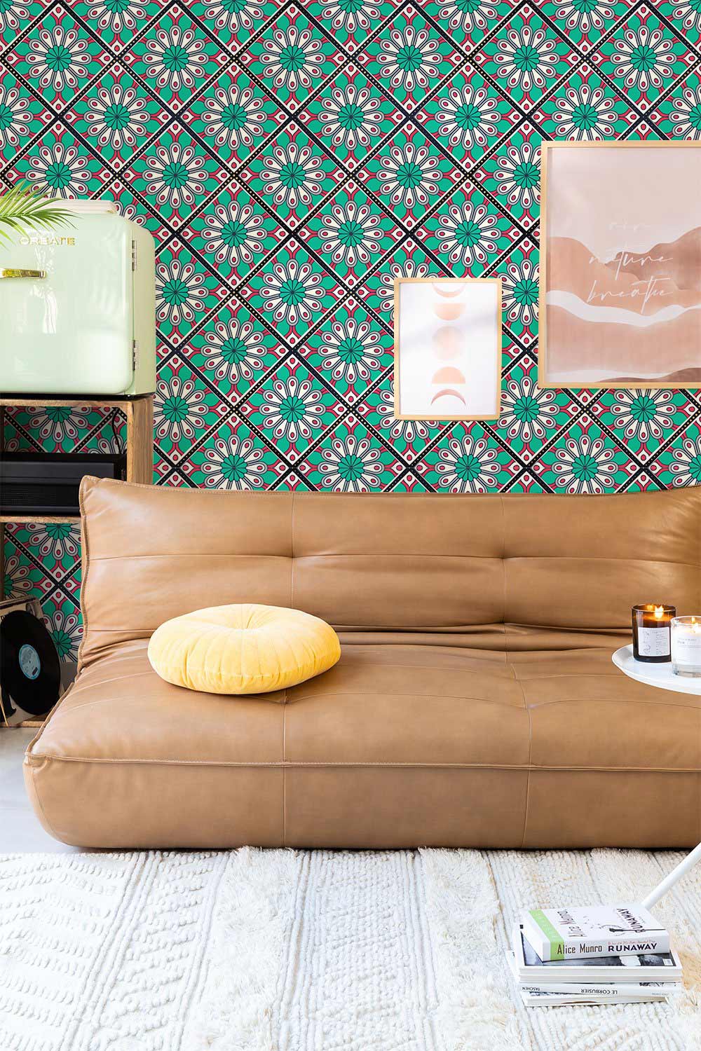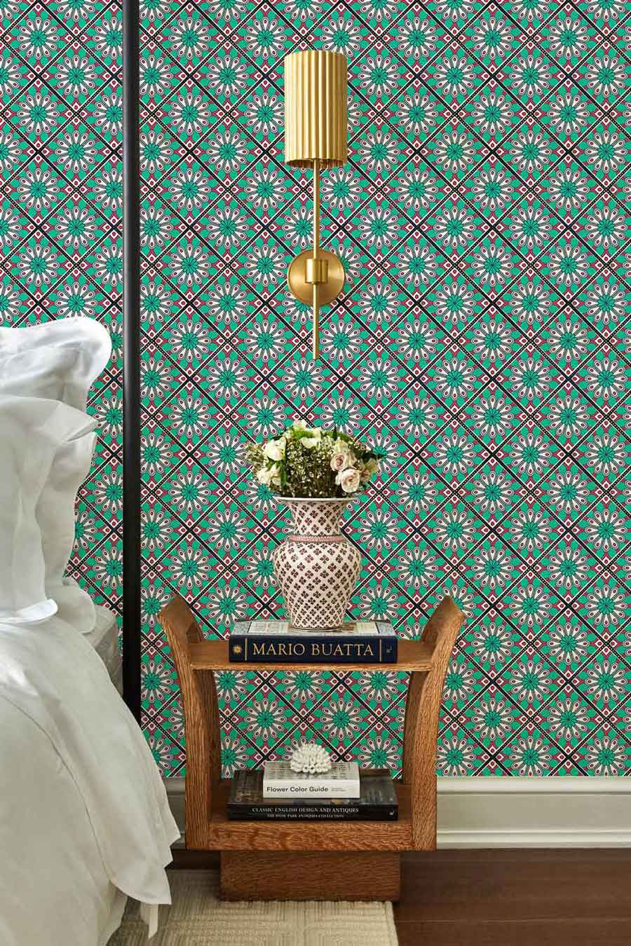 The Turquoise Vectors Wallpaper Mural will provide a creative touch to your walls. This geometric wallpaper's brilliant turquoise with bright pink circles and vector lines constitute a new design that will give a sparkle to your homes and offices. This high-quality wallpaper mural is simple to install and also has a beautiful surface that goes well into creating your individuality in any room of the house, but it is particularly suited for bedrooms to bring out your imaginative side whenever you rest.