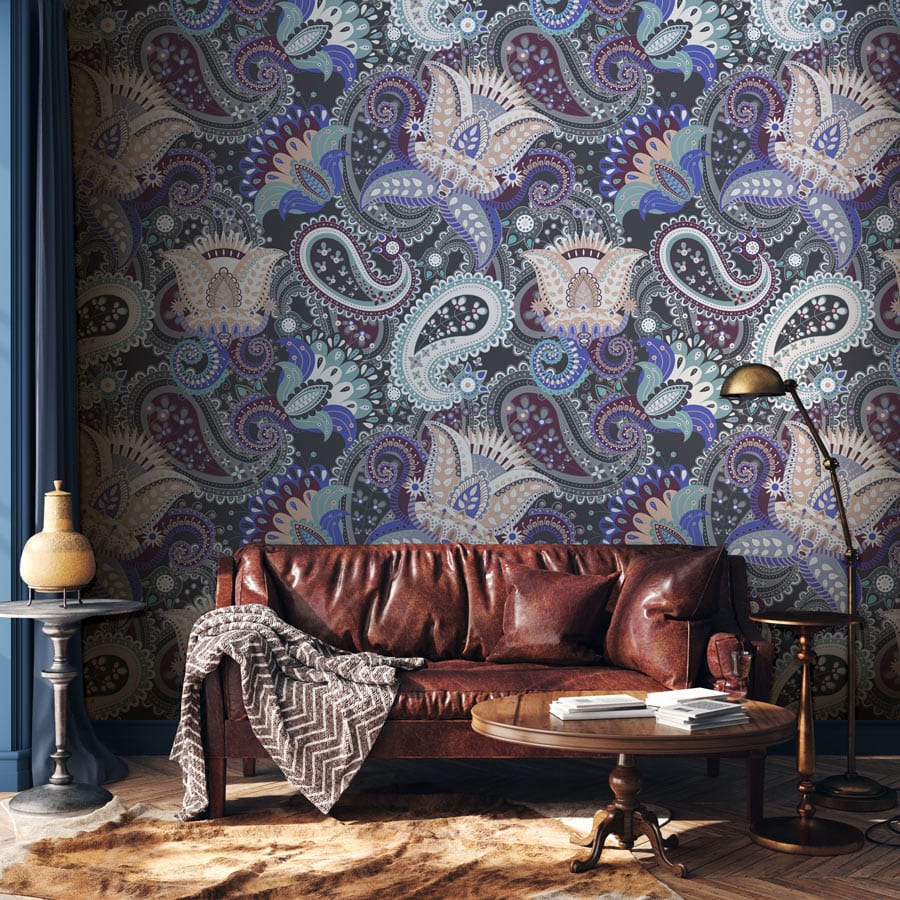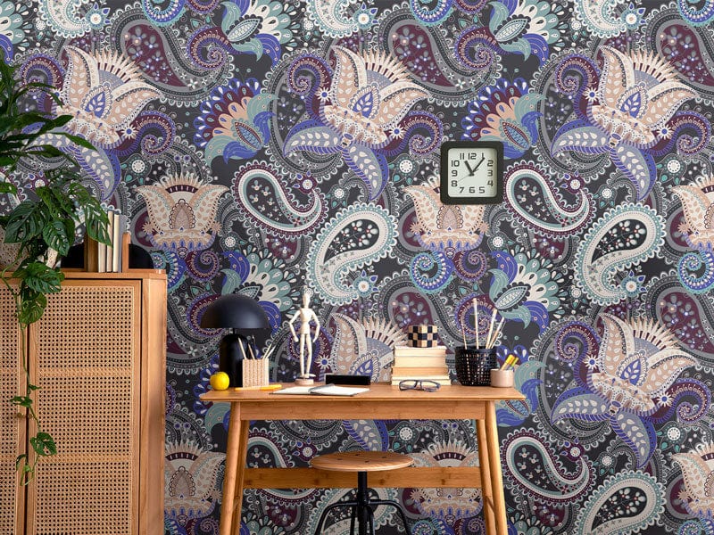 Immerse your surroundings in the intricate artistry of the Twilight Paisley Dreamscape Mural Wallpaper. This design weaves a tapestry of lush florals and swirling paisleys, interlacing delicate patterns with precision. Set against a rich backdrop, it radiates elegance and depth, seamlessly suited for both classic and contemporary interiors.