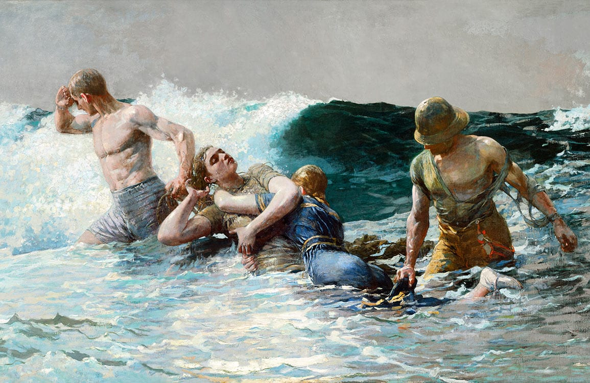 Get ready to bring the sea and its inhabitants into your space with this Undertow Mural Wallpaper. Inspired by Homer鈥檚 painting of the same title, it transfers the calming, meditative quality of an ocean view onto your walls. Featuring two women pulling each other on the center of the canvas with two men who are trying to save their lives from the ravages of the sea, this mural wallpaper captures the perfect composition of this dramatic scene. Blue, green, and white colours were used to paint the foamy water, while a big and dark smashing wave appears in the distance, highlighting the impending peril. This painting mural will look stunning in the nursery of your child.