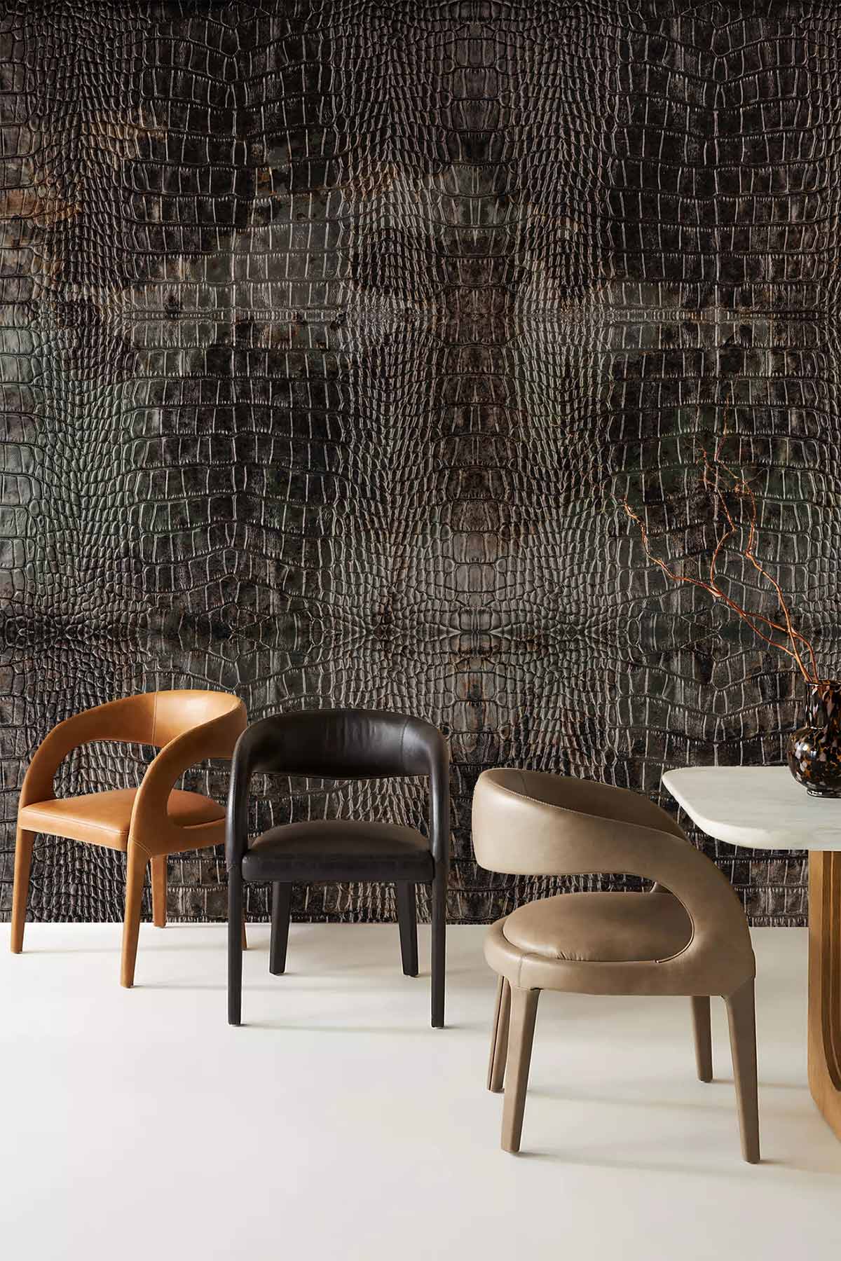 This animal skin wallpaper mural with Uneven Brown Python Skin Texture design is a creative, beautifully-designed wall decal. This design features a textured reptile skin pattern in brown hues, bringing warmth to your home office. With its rich and eclectic look, you can create an incredible atmosphere that is perfect for an exotic hunting lodge look or for any space that needs some added character.