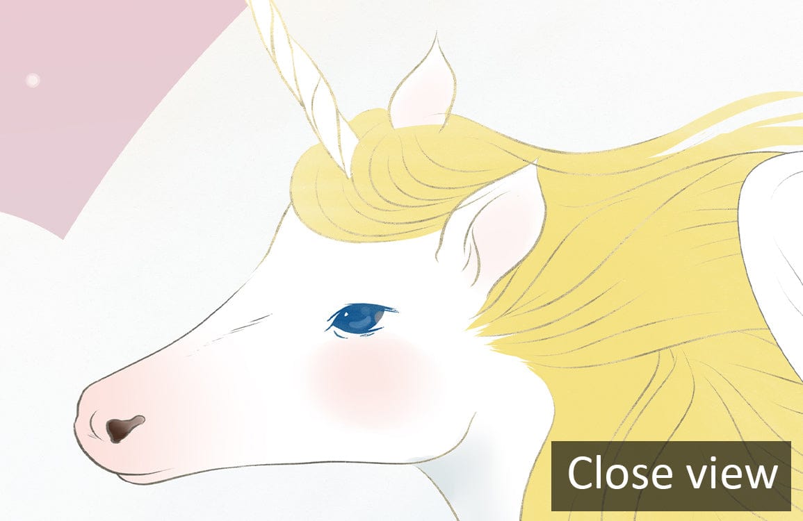 Send you and your baby girl to a dreamy world with this unicorn and princess wallpaper mural. Achieve your little girl's dream of being a princess living in a fairy tale! Ideal pink aesthetic wallpaper mural for kid's bedroom, play room and nursery room to turn your home interior space into a dreamy fantasy!