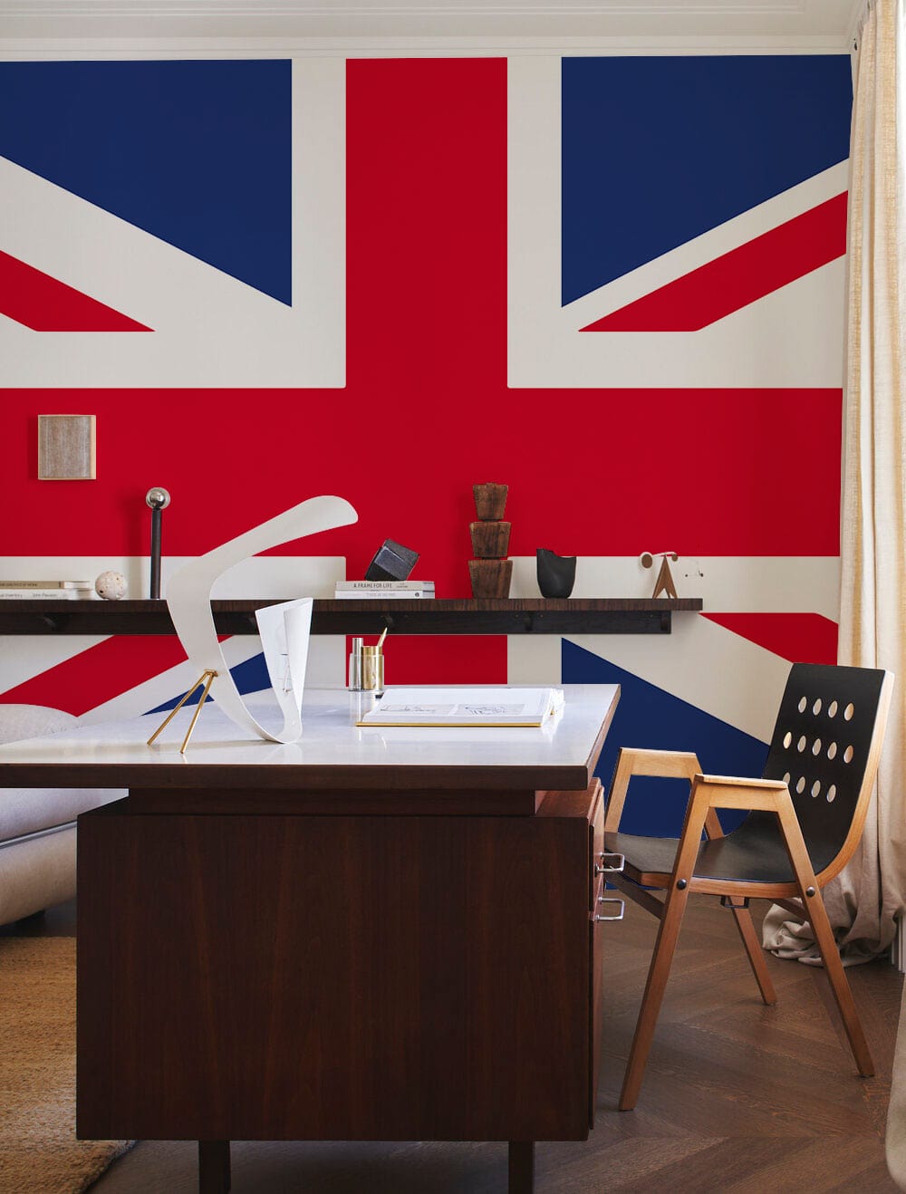 Capture the spirit of British heritage with the Union Jack Flag Wallpaper Mural, a striking piece that seamlessly drapes vibrant hues across your walls. This design weaves the boldness of red and navy with the purity of white, offering a captivating tapestry of national pride and classic elegance. Ideal for curating an ambience of sophistication, its timeless aesthetic complements a variety of interior styles, making it a versatile choice for both traditional and contemporary settings.