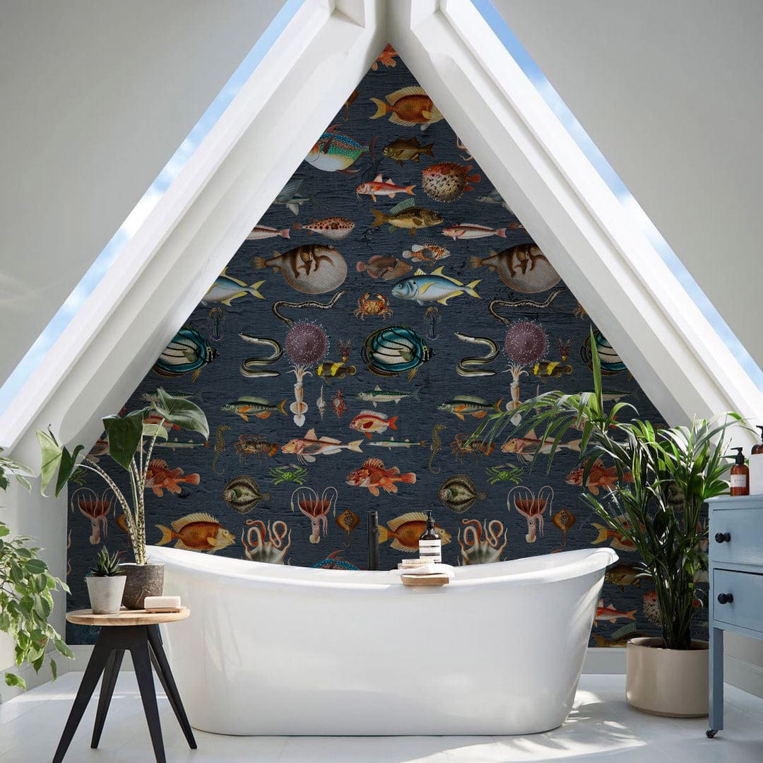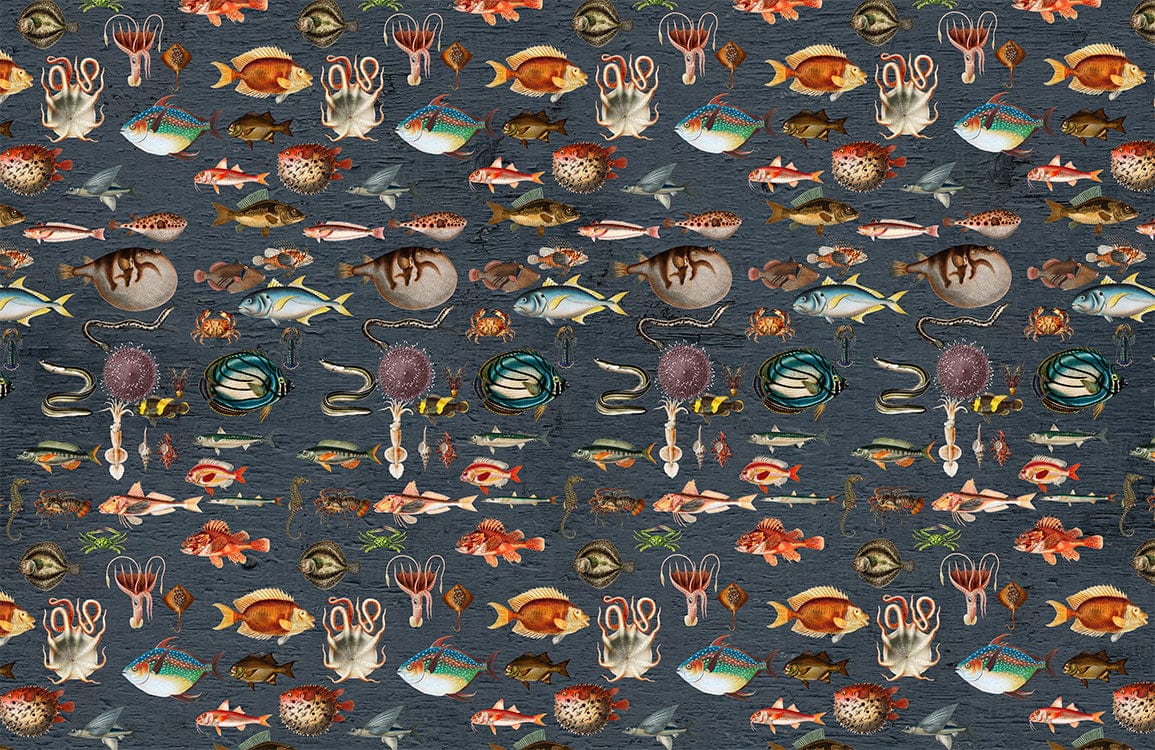 Dive into an oceanic dreamscape with the Colourful Marine Creatures ll Wallpaper Mural, where intricate illustrations of vibrant sea life swim against a deep, soothing backdrop. This exquisite design captures the elegance of marine ecosystems with fine details and artistic flair, offering a timeless aesthetic that complements both modern and traditional interiors. Perfectly suited for a variety of settings, it captivates the imagination and brings a touch of the ocean's mystery to your space.