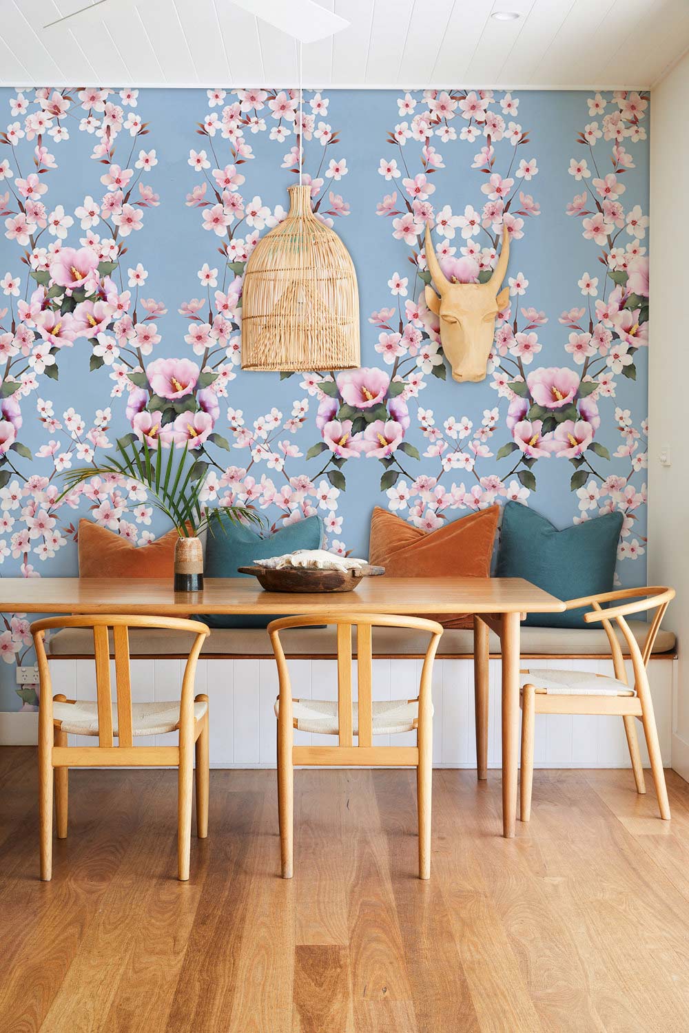 Add a vintage effect to your home with the Japanese鈥檚 Sakura trendy print that will turn your home completely. This design with the baby blue background and the pinky flowers is your perfect choice for a relaxing cool space. Style this wallpaper at your Livingroom, bedroom, restaurant, caf茅, or at your dining room for a very refreshing and vibrant looking with modern trendy print.