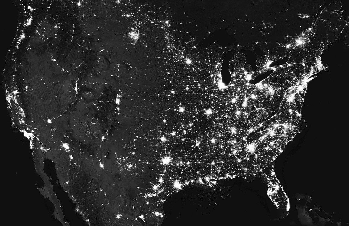 Capture the magic of the night with the USA at Night Wallpaper Mural. This stunning piece features a detailed depiction of the United States illuminated by city lights, offering a captivating contrast between darkness and light. Each glowing cluster reflects urban vibrancy, set against a deep, atmospheric backdrop. This mural fits perfectly within modern or eclectic designs, bringing a sophisticated charm to your interior settings.