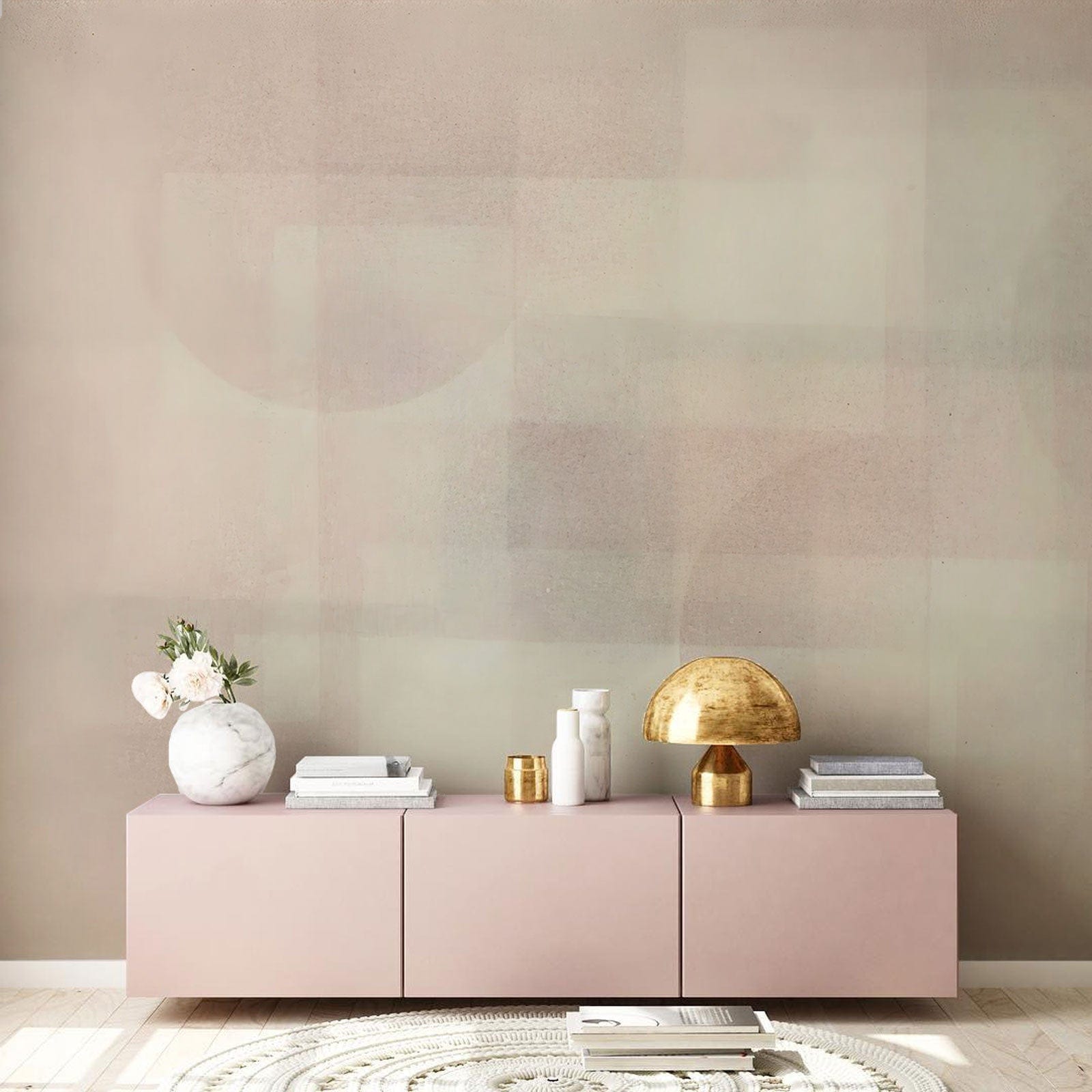 The Vague Geometric Wallpaper Mural exudes a refined elegance with its subtle interplay of soft geometric shapes set against a tranquil backdrop. Its delicate blend of muted tones creates a harmonious ambience, making it a versatile choice for both contemporary and classic interiors. The intricate layering of circles and rectangles invites a sense of depth and sophistication, ideal for spaces seeking an understated yet artistic touch.