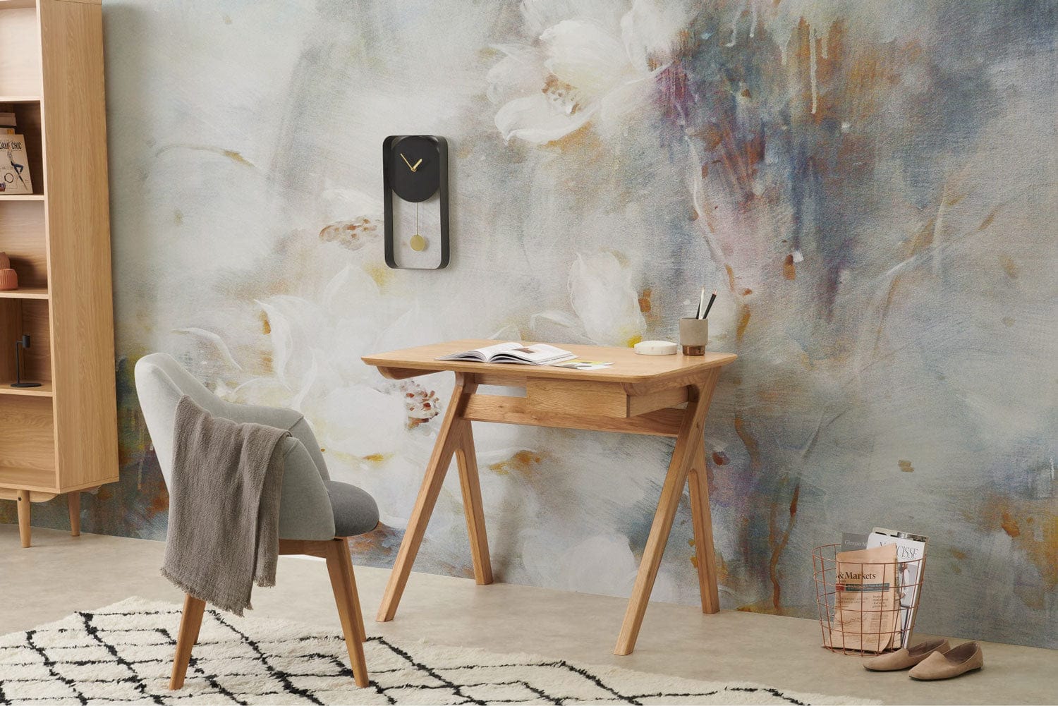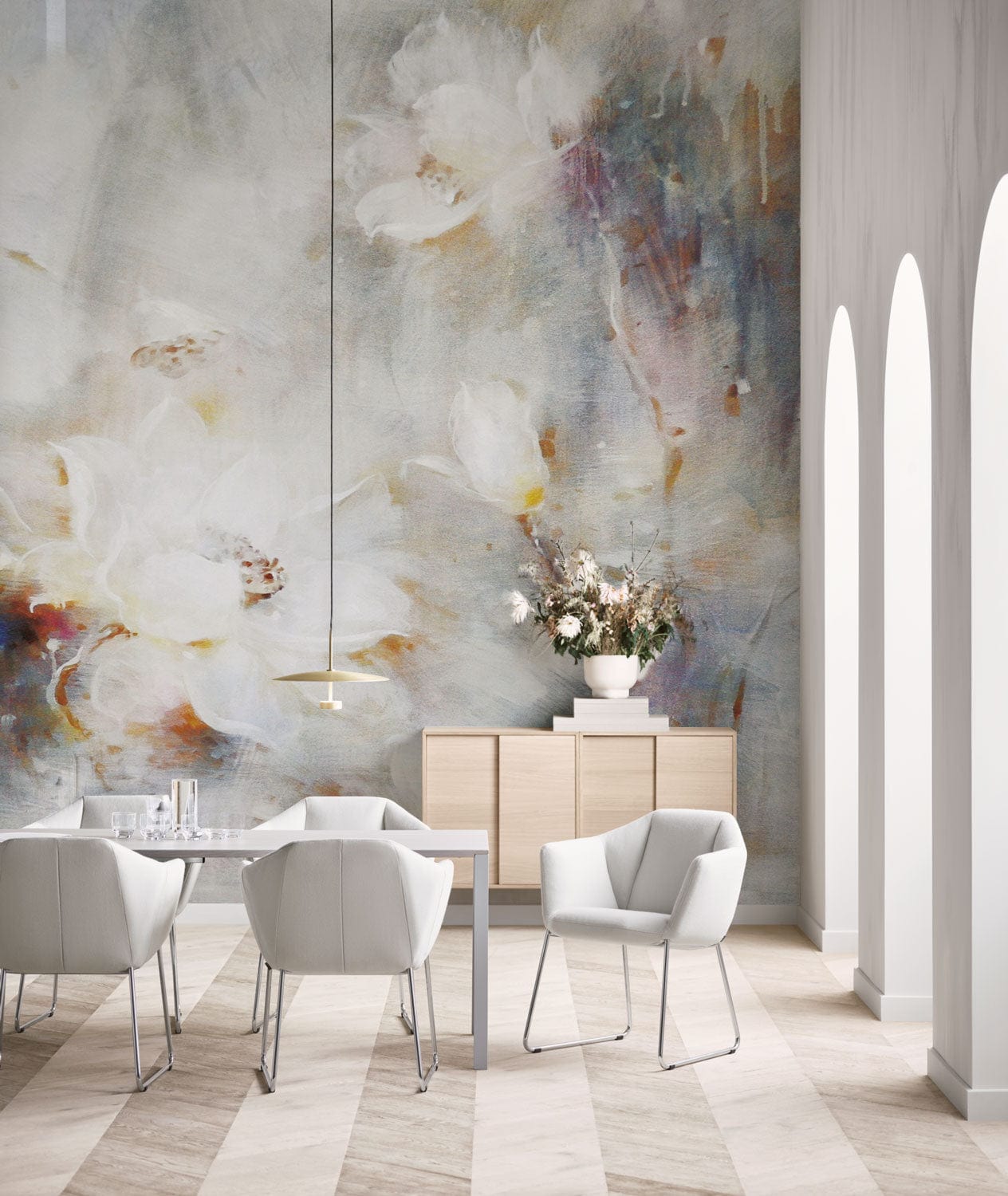 The Vague Painting Flowers Wallpaper Mural offers a dreamy escape with its soft floral motifs, elegantly blending abstract and natural elements. Delicate brushstrokes and muted tones create a serene backdrop that infuses sophistication into any space. This exquisite mural's ethereal quality fosters a tranquil ambience, making it an ideal choice for both classic and contemporary interiors.