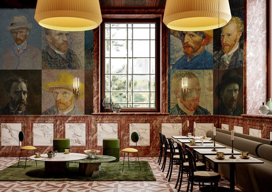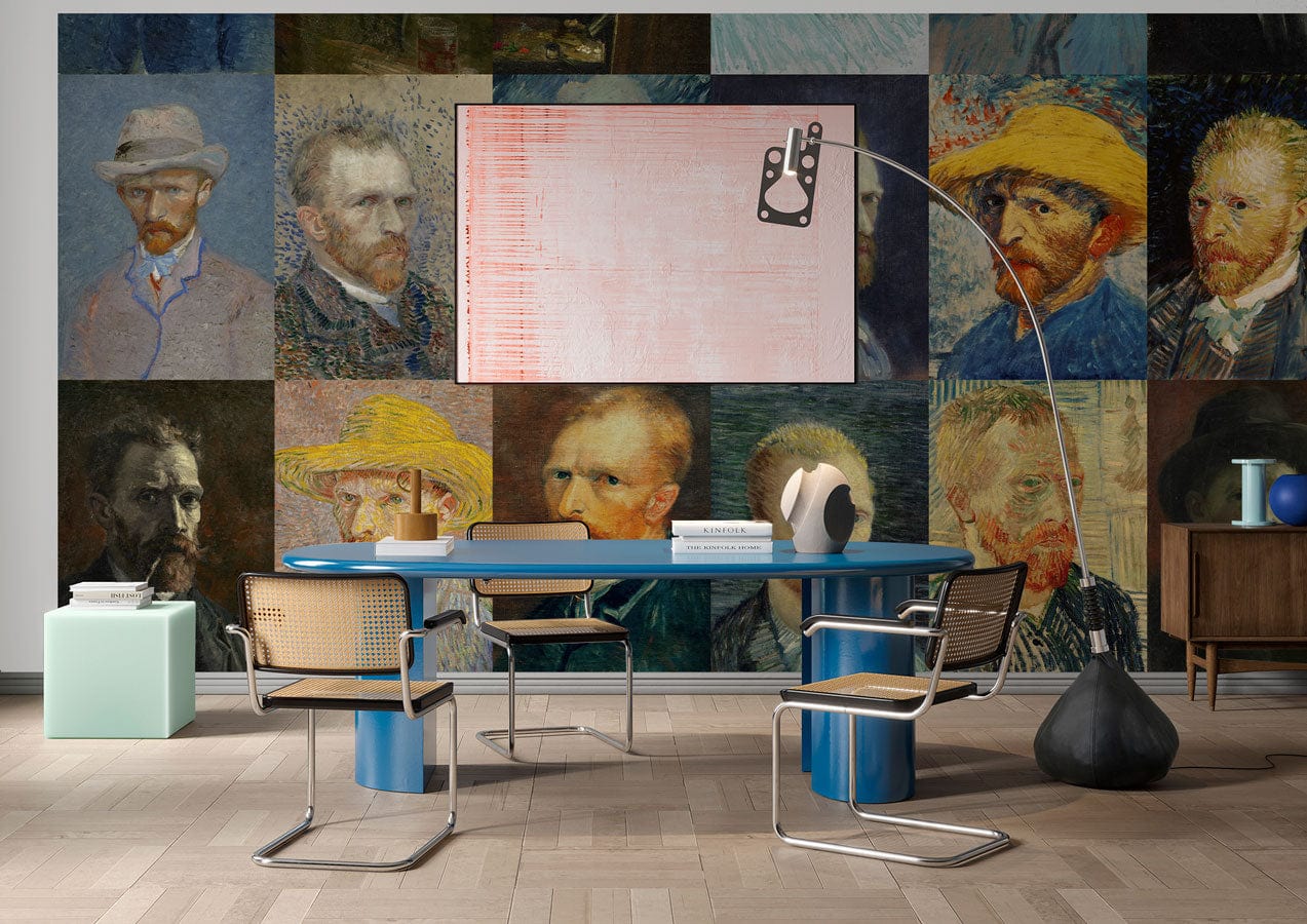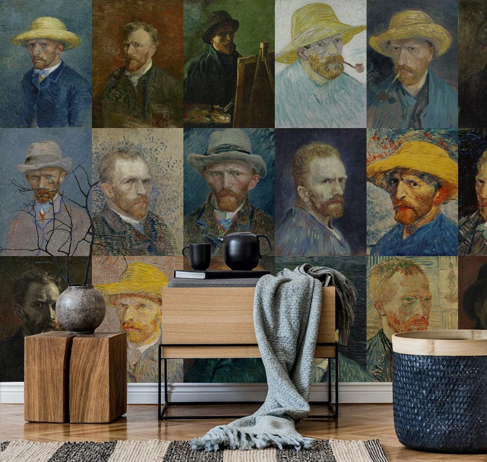 Immerse your space in the rich artistic spirit of Van Gogh with this captivating self-portrait wallpaper mural. Each panel is a tribute to the master's iconic brushwork, presenting a blend of intricate textures and expressive details. The vivid hues and varied compositions create a dynamic visual tapestry that exudes sophistication, effortlessly complementing both classic and contemporary interiors.