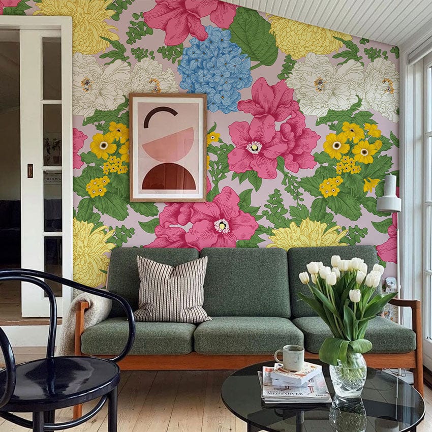 Discover an exquisite tapestry of nature with the Various Colourful Flowers Wallpaper Mural. This sophisticated design weaves together a rich palette of vibrant hues, effortlessly bringing the beauty of a flourishing garden indoors. The meticulous detailing of each petal and leaf creates a textured, lifelike appearance that infuses any space with timeless elegance. Perfectly suited for a range of decor styles, this mural harmoniously complements both classic and contemporary interiors.