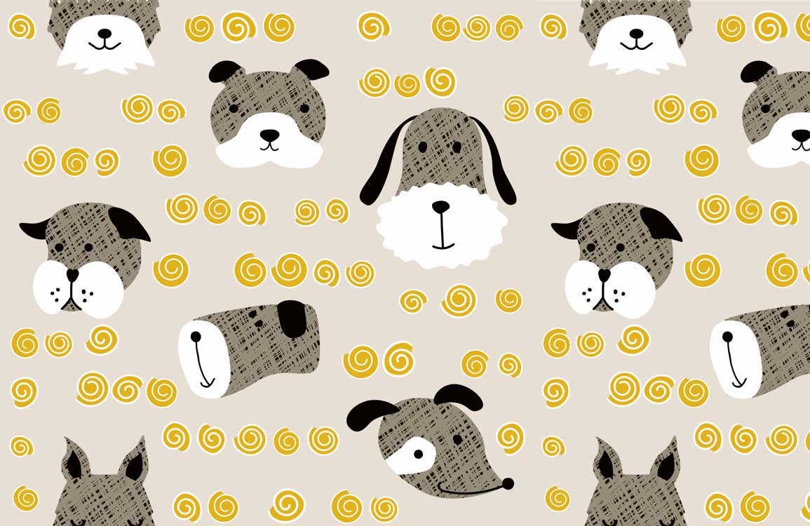 This charming dog wallpaper mural presents a delightful array of canine character sketches, artfully arranged against a neutral background. The playful spirals accentuate each dog's unique personality, creating a lively, yet sophisticated ambience. Its versatile design fosters warmth and whimsy, making it an ideal choice for a variety of settings.