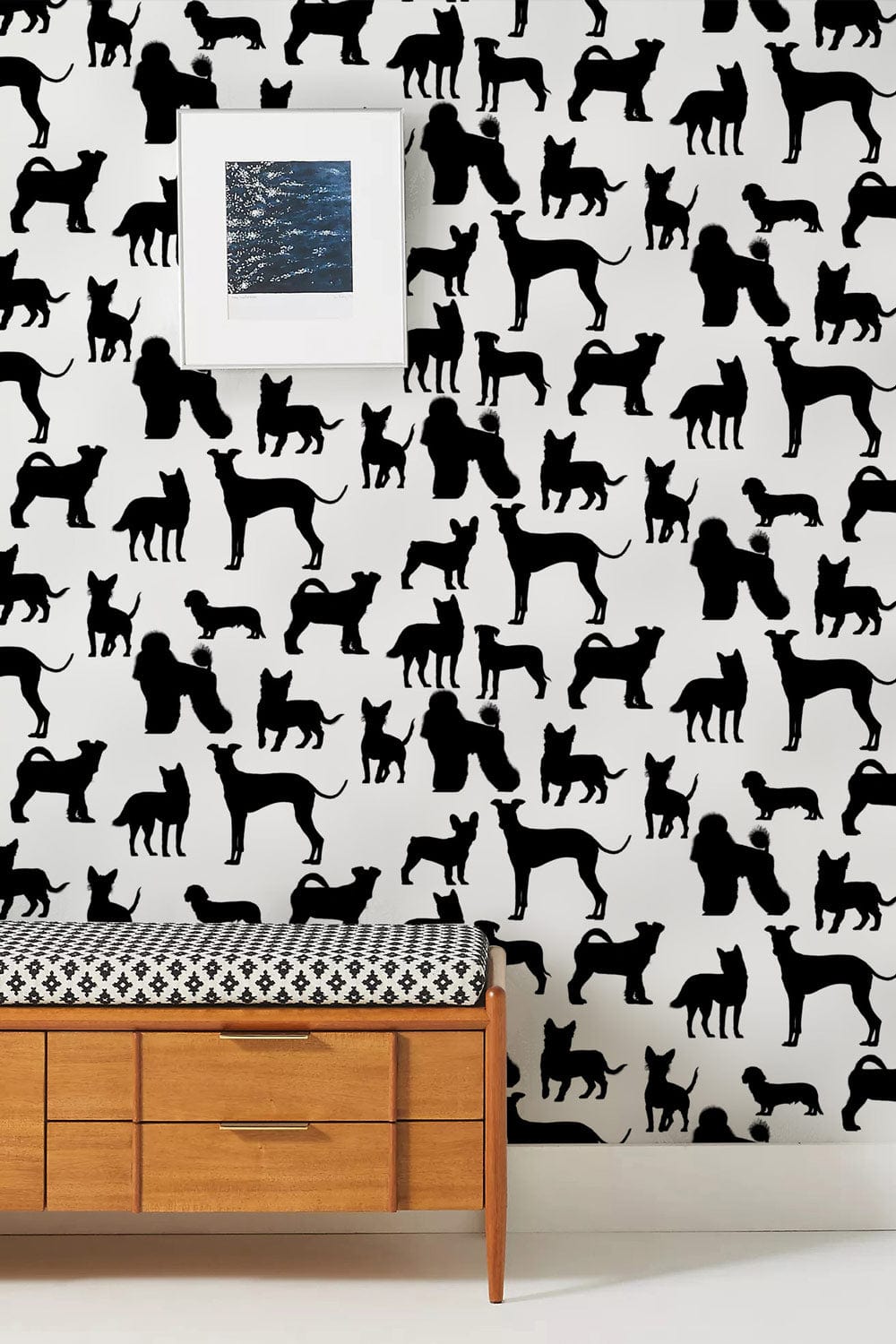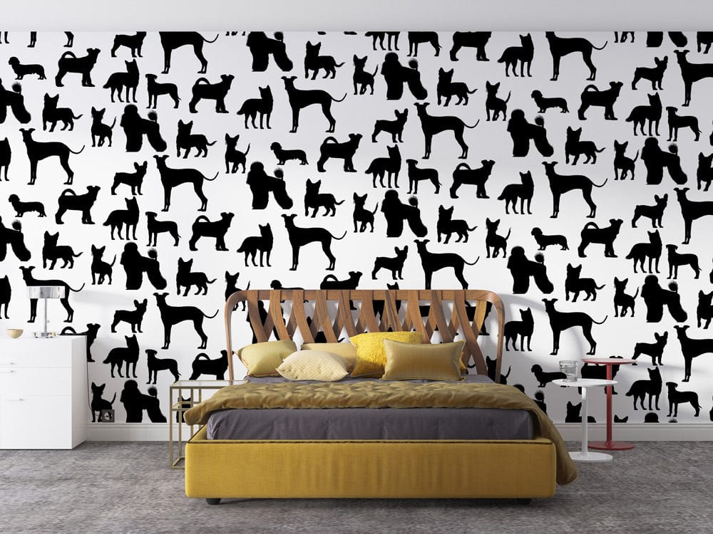 Let your dog show off its favorite breed with this great looking mural wallpaper. A fun and functional design featuring various silhouettes of different dogs, this dog mural will add character to any room in your home. The small dose of colour combined with the black and white tones creates a calm and relaxing feel but still makes an impact to your decor. Perfect for watching TV and reading book in the living room, kitchen, or even on the bedroom, this cute and fun print will bring the joy of dogs into your home.