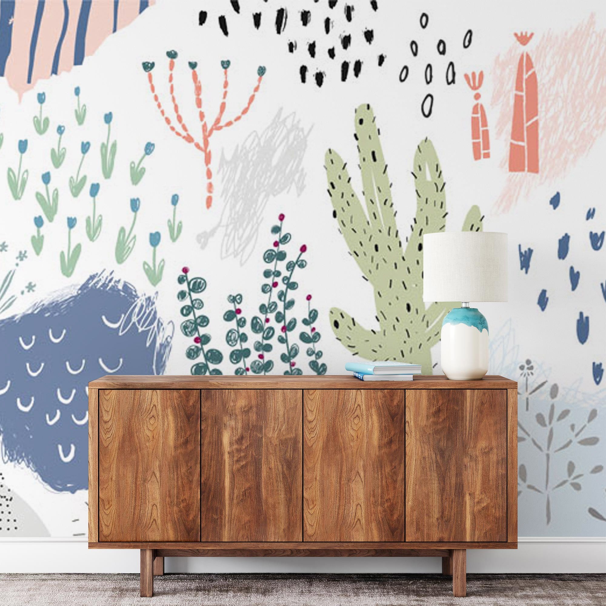 Immerse yourself in the serene elegance of the Plant Pattern Wallpaper Mural. This exquisite mural brings a sophisticated touch to interiors with its intricate botanical designs. Featuring a harmonious blend of cacti and leaf motifs, each detail is carefully illustrated, creating a calming tapestry of nature. The mural seamlessly weaves together abstract forms and patterns, offering a timeless backdrop to both contemporary and classic spaces.