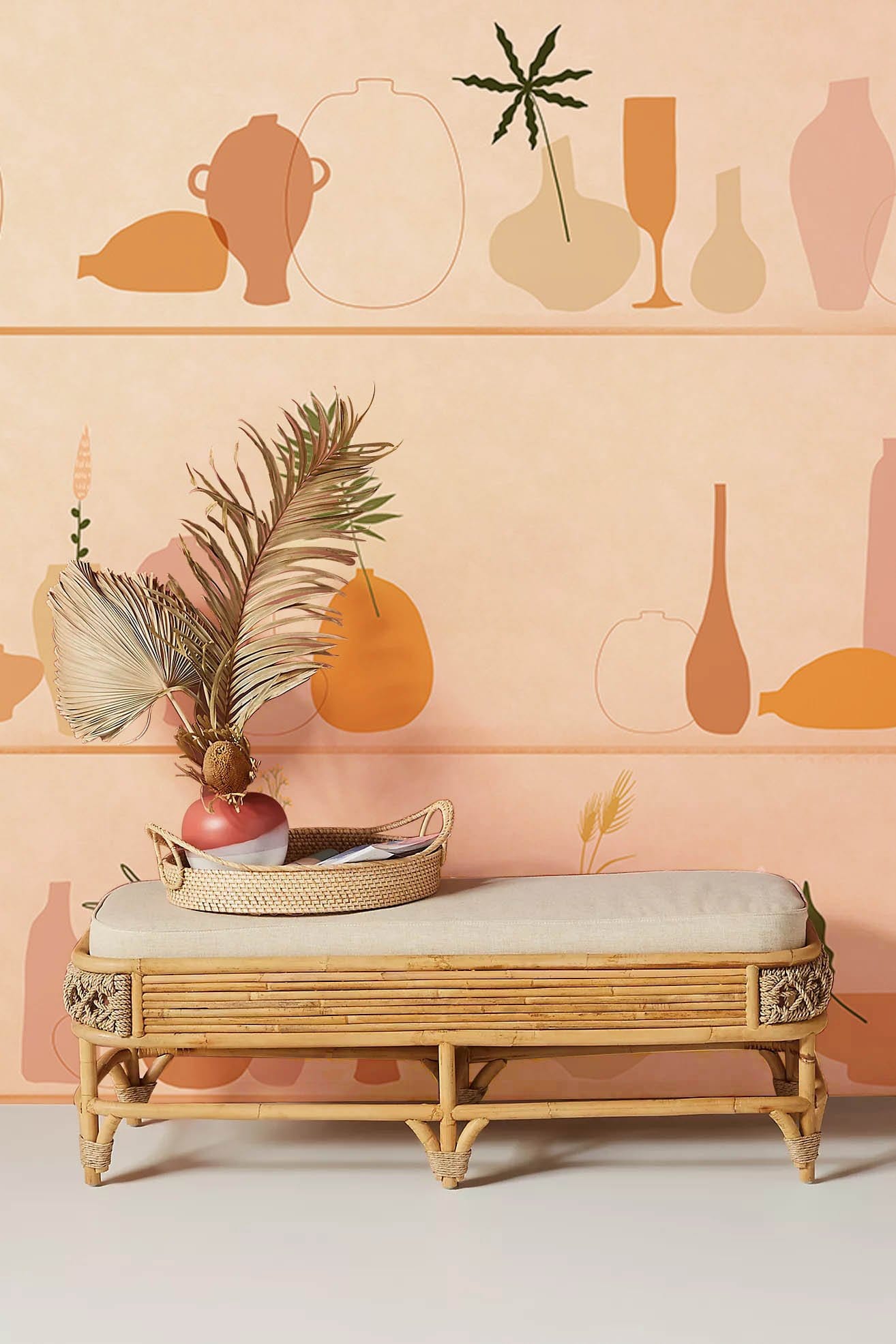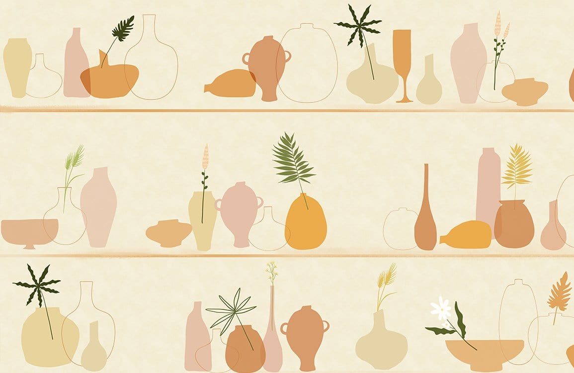 Immerse your space in sophistication with the Vase Wallpaper Mural. Delicately illustrated silhouettes of vases and foliage grace a subtle backdrop, creating a serene tableau reminiscent of classic art. Its intricate detailing invites you to explore each line and form, providing a graceful yet intriguing presence that complements a wide array of interiors.
