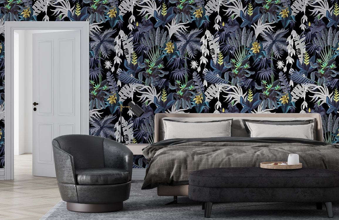Immerse your space in the serene allure of the Vector Plants Wallpaper Mural, where intricately detailed foliage in layered patterns creates a lush tapestry. Subtle hints of deep green, soft gold, and crisp white intertwine, crafting an ambience of natural elegance. This mural seamlessly blends into any setting, offering a sophisticated backdrop for both classic and contemporary interiors.