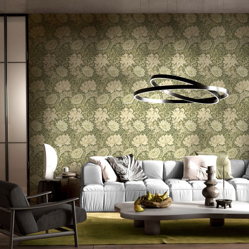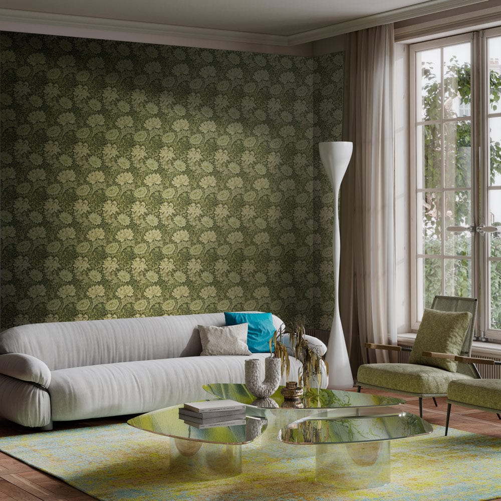 The Verdant Floral Cascade Mural Wallpaper weaves a tapestry of nature with intricate floral motifs cascading elegantly across the surface. Its delicate interplay of shapes and patterns brings a touch of the outdoors inside, enveloping any room with a serene and sophisticated ambiance. Crafted to perfection, this wallpaper complements both classic and contemporary interiors, making it a versatile choice for various spaces.