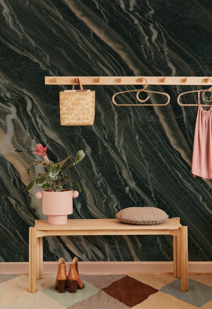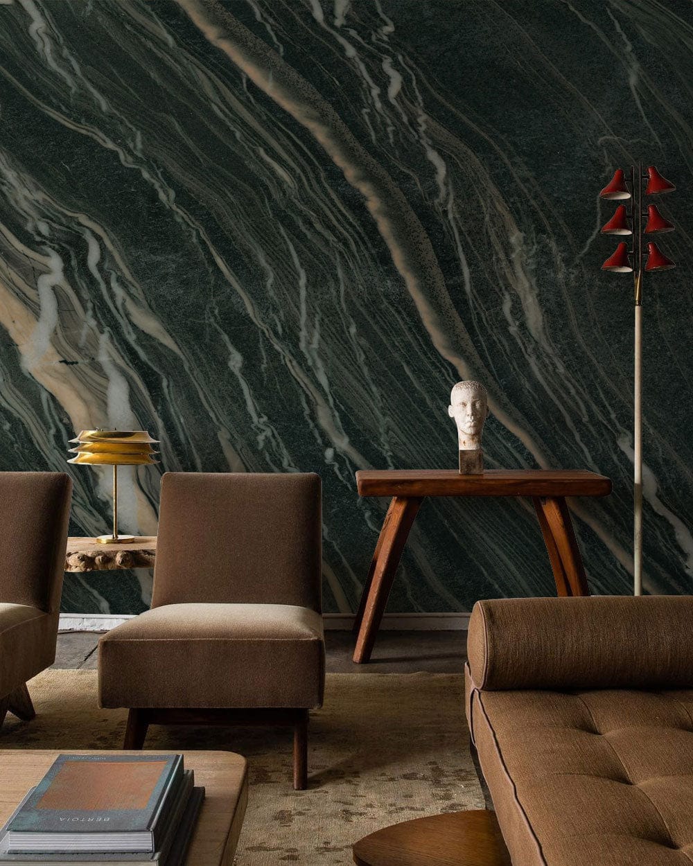 Immerse your space in the refined elegance of the Vertical Track Crystal Wallpaper Mural, where intricate swirls of deep green interlace with soft beige and subtle hints of ivory. This design captures the essence of natural stone, providing a sophisticated and timeless backdrop that suits a myriad of interior styles. Whether featured in a modern lounge or a classic hallway, this mural introduces a quiet opulence and serene atmosphere, echoing the nuanced textures of fine marble.