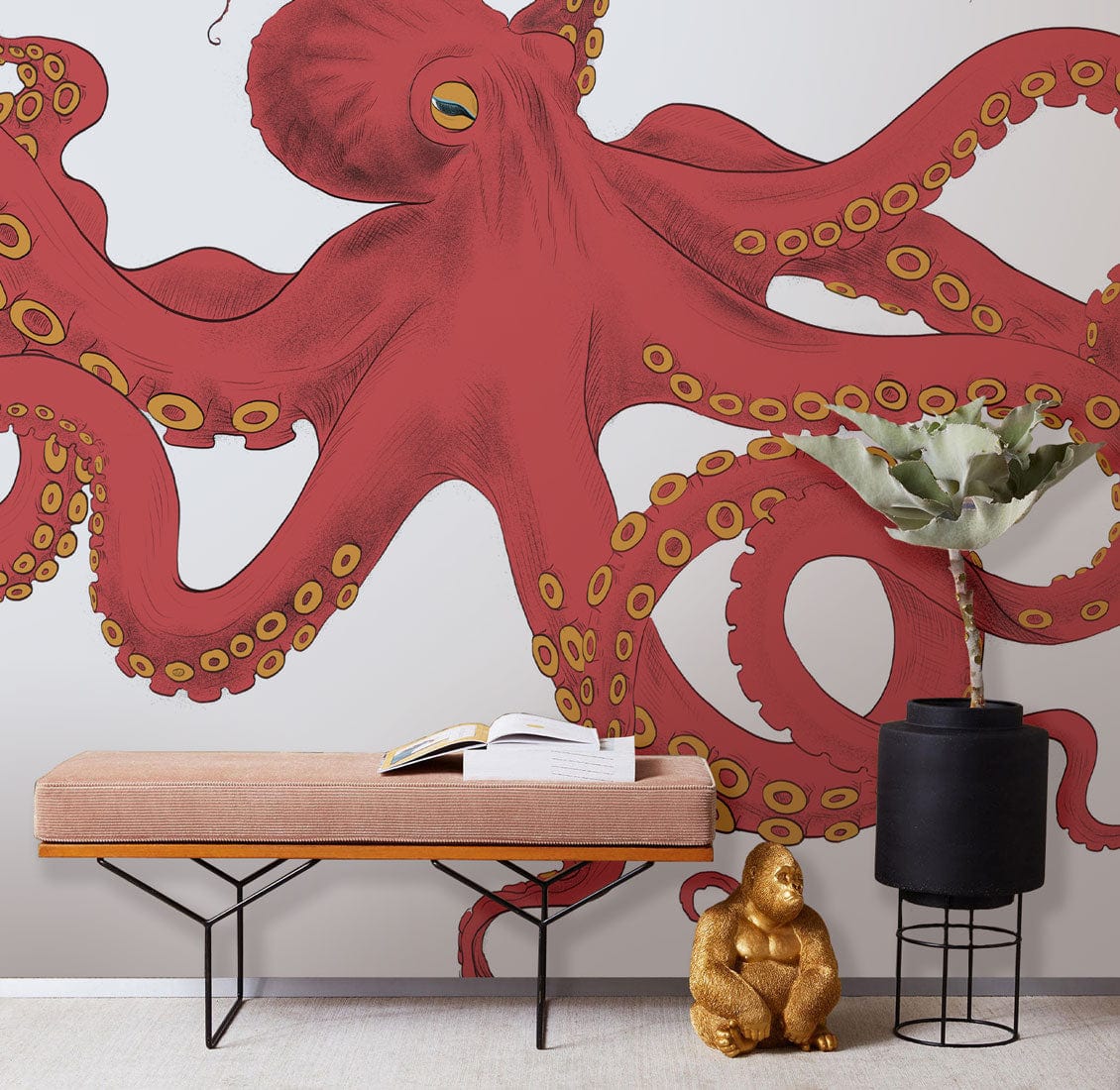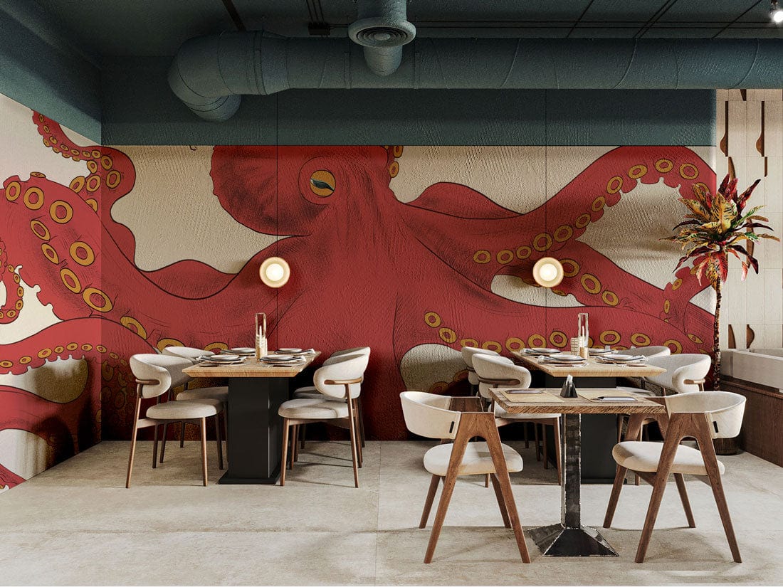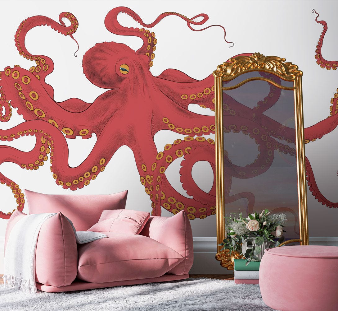 Dive into an oceanic odyssey with the Vibrant Red Octopus Sea Life Wallpaper. This exquisite design showcases a majestic red octopus gracefully set against a clean backdrop, offering an artistic touch that both intrigues and inspires. Its striking colours and intricate details evoke a sense of the deep sea's allure, making it a statement piece suitable for any sophisticated interior. Perfectly blending natural beauty with artistic elegance, this wallpaper effortlessly complements contemporary or eclectic spaces.