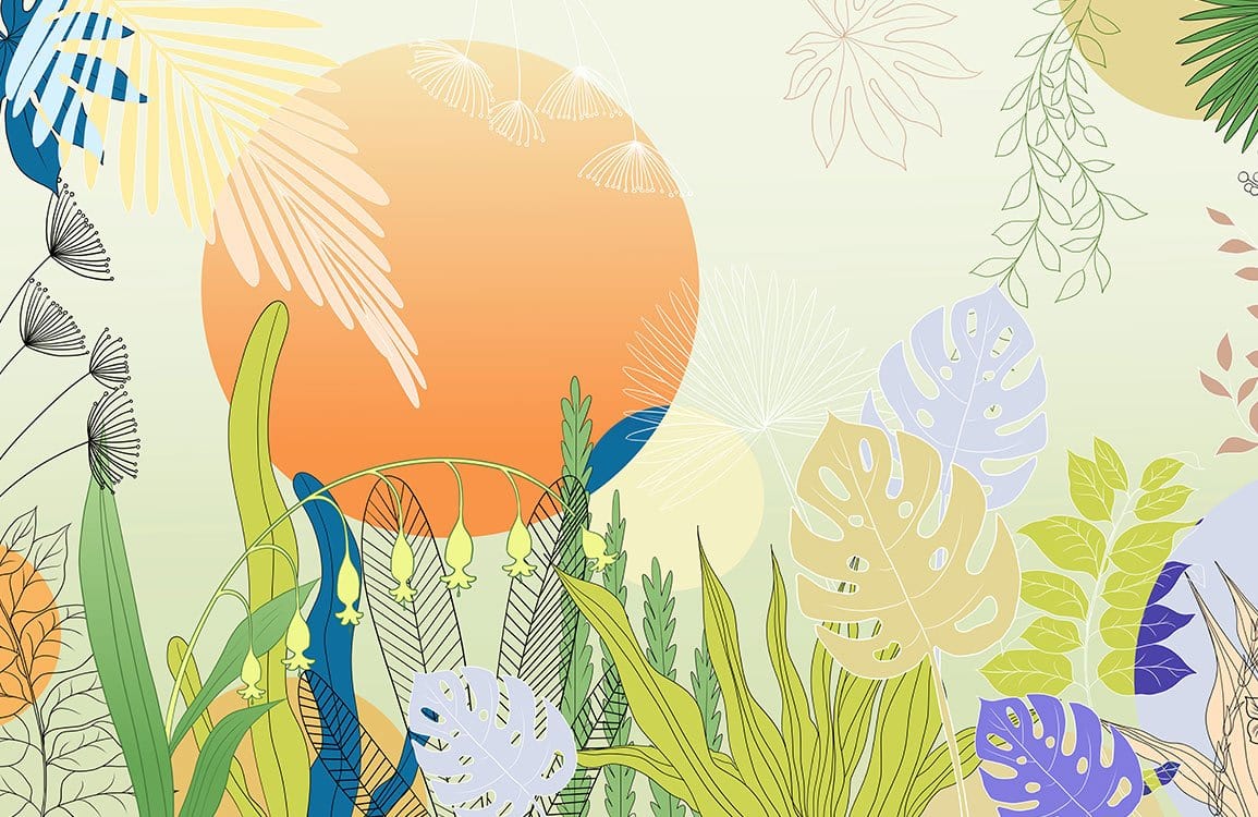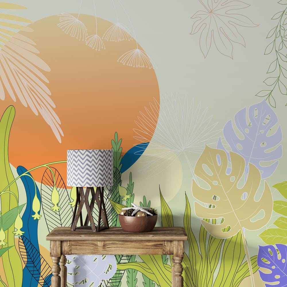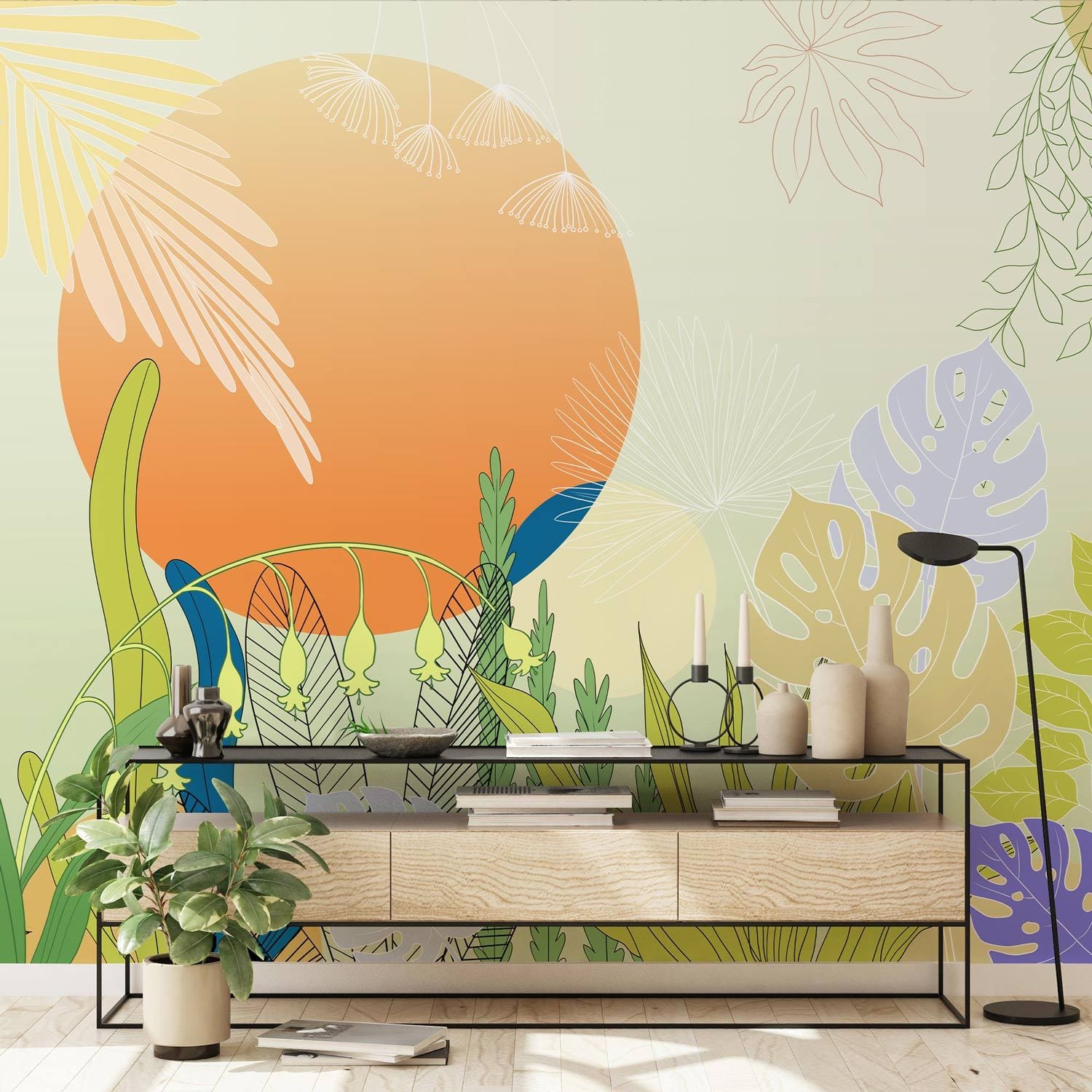 Welcome fresh tropicals into your space full of stylish tone and detail, with the colouful Tropical Minimalist Wallpaper Mural. This hand-drawn illustration features a subtle paper texture, adding the the realistic feel of the design. Perfect for minimalist tropical living rooms or bathrooms, or even a sophisticated children隆炉s nursery; whatever your preference, the muted palette will work in a range of spaces.