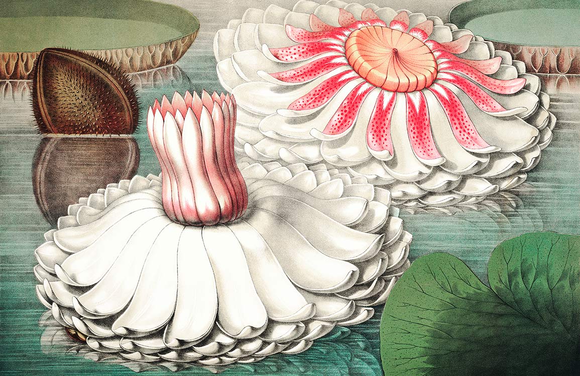 It is the perfection in love creation and the beauty of nature can all seen in this wallpaper of Victoria Amazonia plant. This beautiful flower hat grows in water and helps the surrounding plant =s to live and have the normal life cycle. Add this plant to a place that need to be filled with lively vibes. Style this design with pinkish chiffon curtains and white furniture to keep it light make the place full of life and very chic.