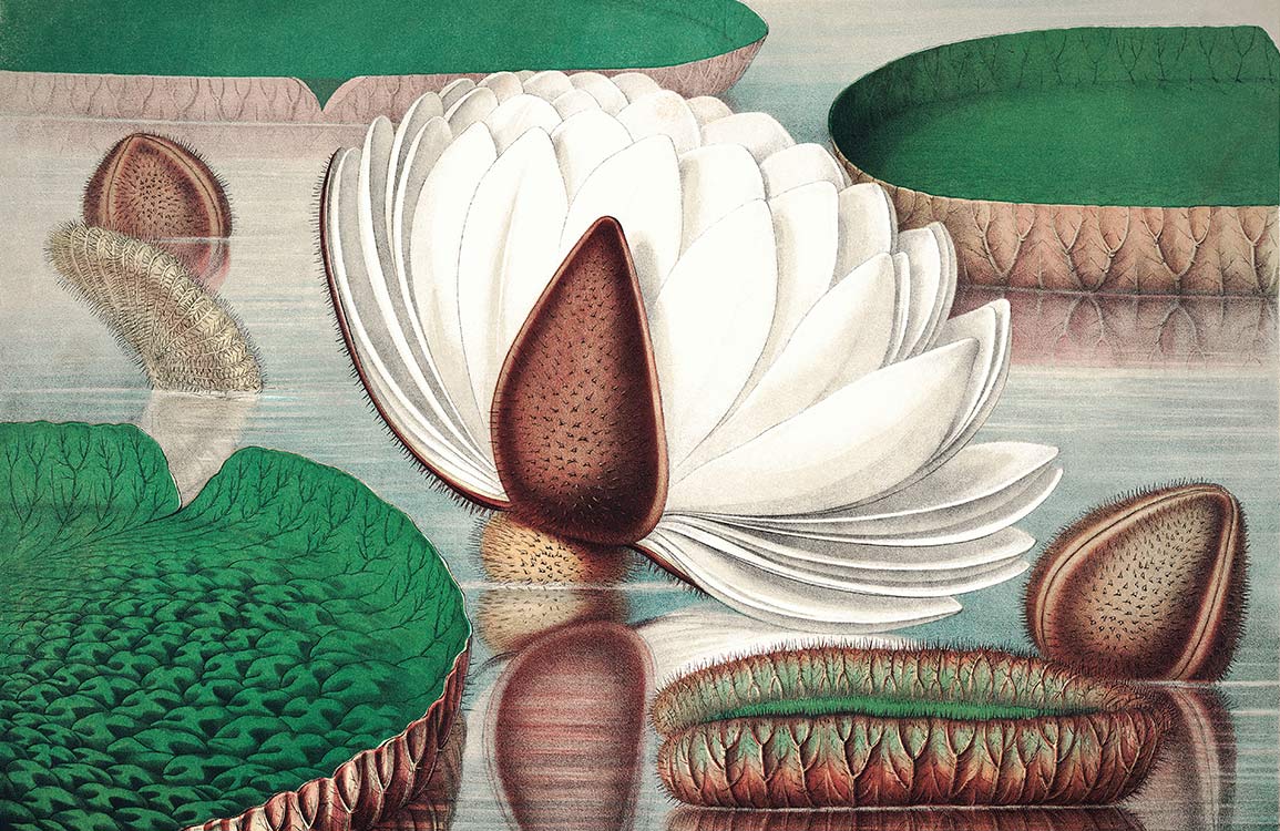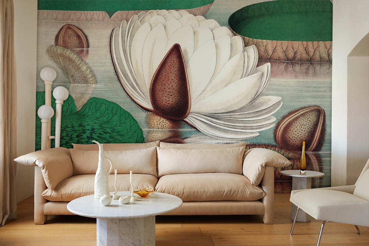 The Victoria Rejia III Wallpaper Mural exudes sophistication with its intricate botanical design, capturing lush green lily pads and a serene white bloom. Perfect for creating a tranquil atmosphere in any space, this mural encapsulates the beauty of nature with a refined artistic touch, making it a timeless addition to both classic and contemporary interiors.