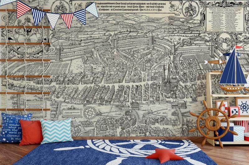 This vintage style map of the city and town is a fantastic background for your rooms. All of the areas and districts of the city have been clearly detailed in this map, as well as rivers and roads. Suitable for all your home office, study room, beddroom and hallway.
