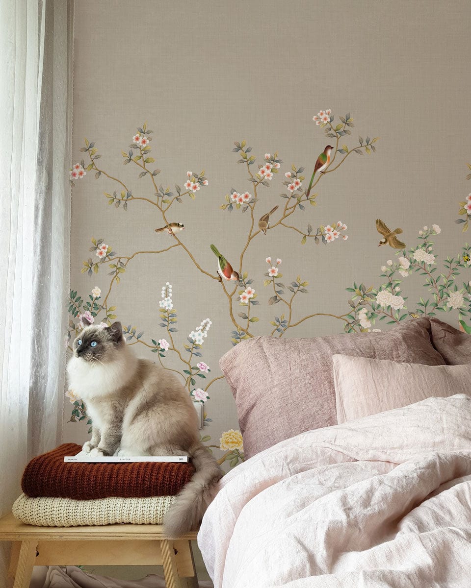 Immerse your space in elegance with the Vintage Paradise Wallpaper Mural. Exquisite floral motifs and delicate birds dance across a soft, muted canvas, evoking a sense of serenity and timeless beauty. Perfectly balancing intricate detailing with gentle hues, this mural offers a sophisticated backdrop suitable for both contemporary and traditional interiors.