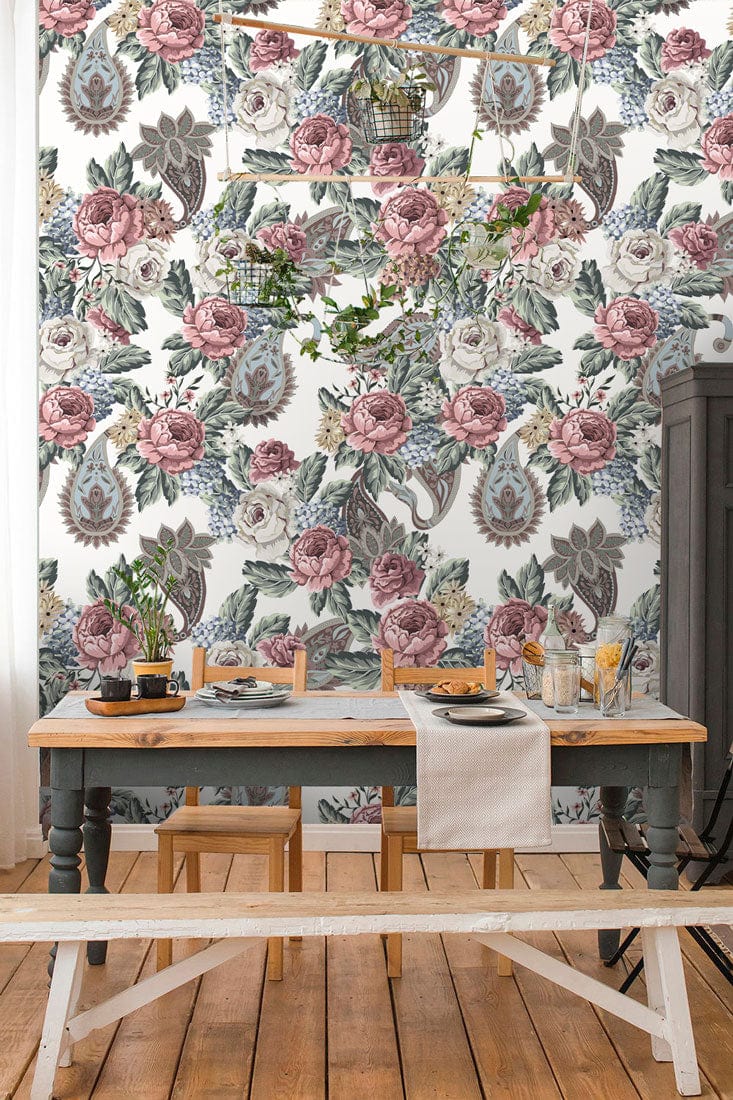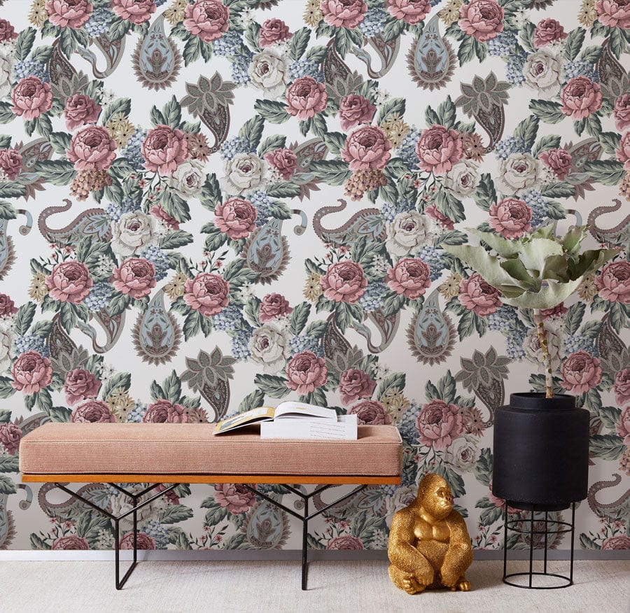 Immerse your space in the elegant allure of the Vintage Blooms and Paisley Elegance Mural Wallpaper. This exquisite design intricately combines lush floral motifs with graceful paisley patterns, rendered in soft, muted hues that evoke a sense of timeless sophistication. Perfectly suited for adding depth and artistic flair, its intricate details capture the essence of classic decor, while the refined textures invite a tactile exploration. Ideal for various settings, its versatile charm complements everything from cosy bedrooms to refined offices, making it an exceptional choice for creating warm and inviting interiors.