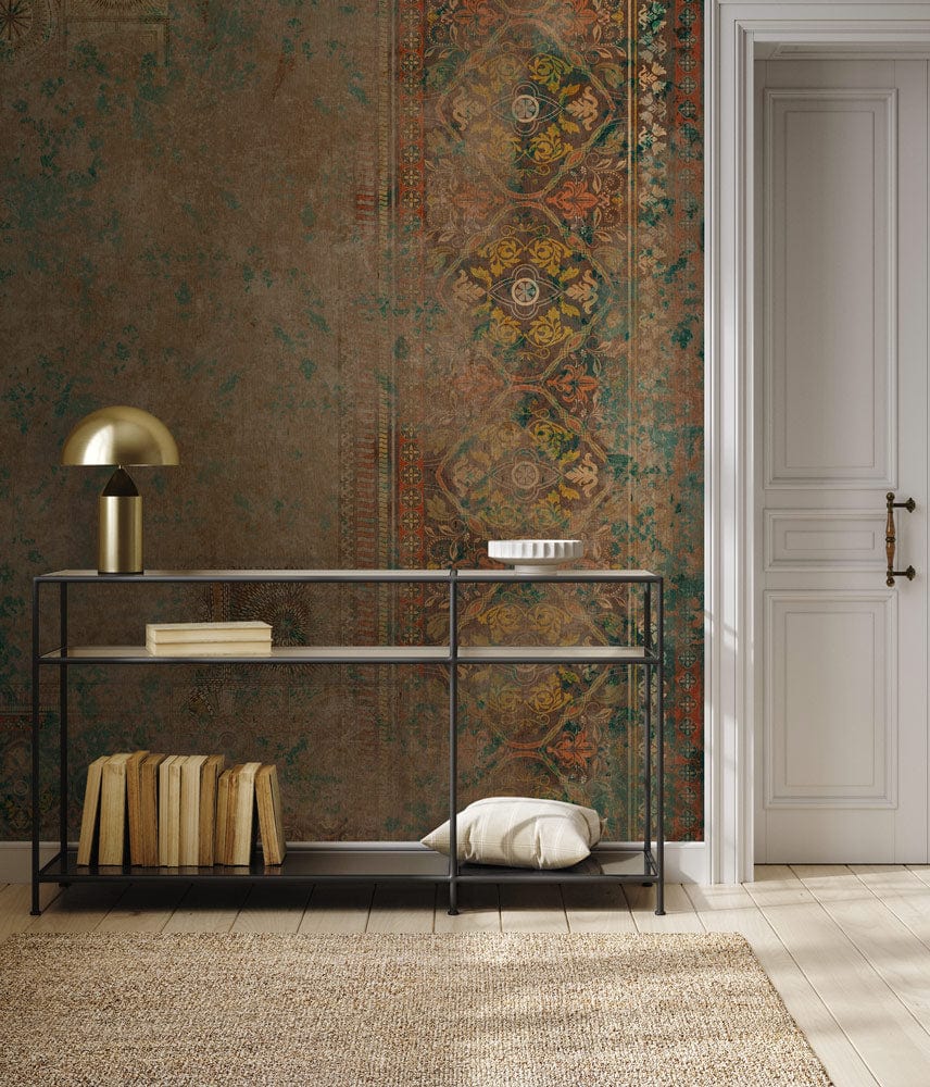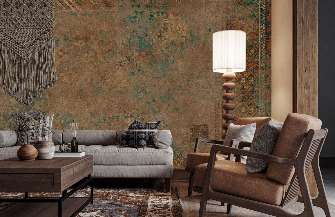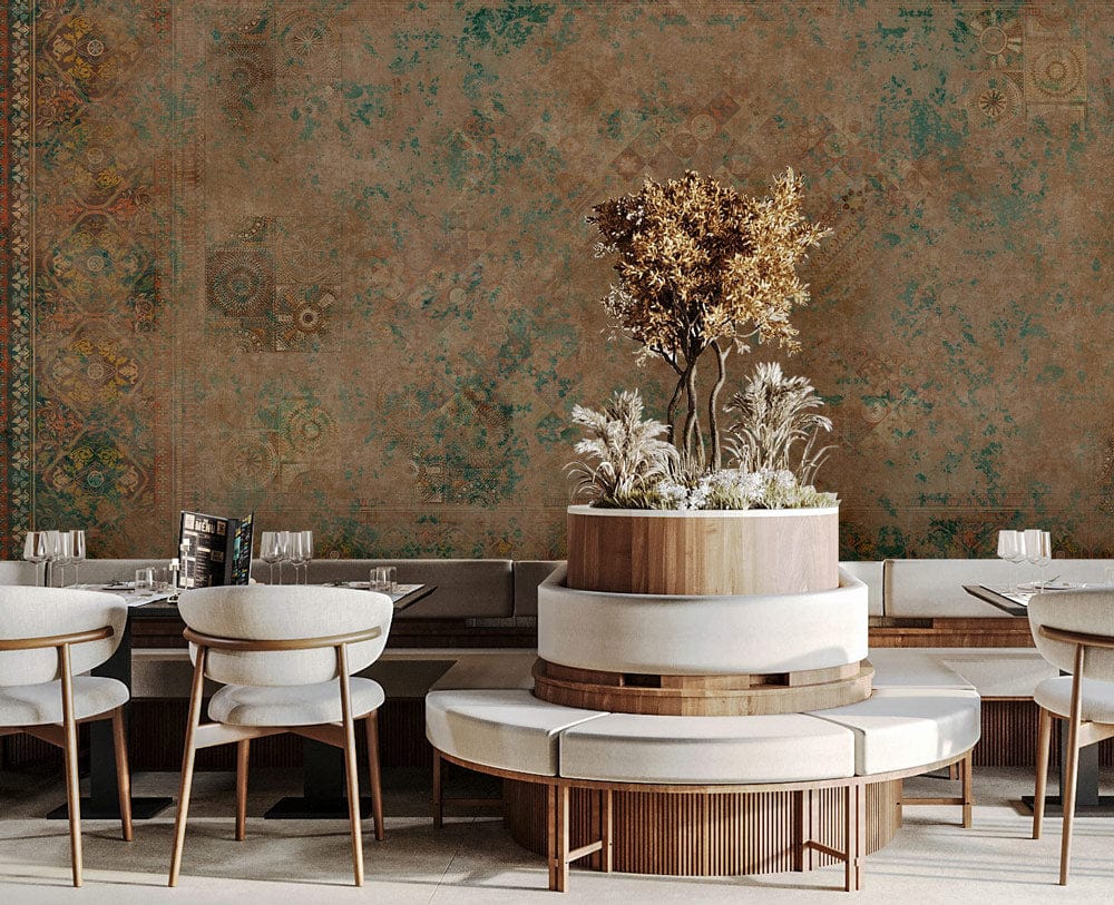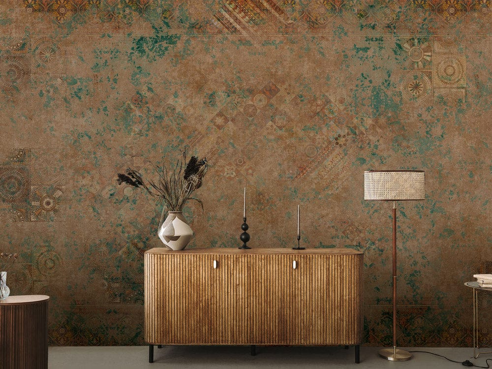 Introduce a touch of timeless elegance to your home with this Vintage Distressed Classical Wall Wallpaper. Its elaborate design features intricate patterns and a weathered texture that evoke a sense of history and artistry. The subtle interplay between warm terracotta and muted teal provides a sophisticated palette, making it an ideal backdrop for both traditional and contemporary settings.