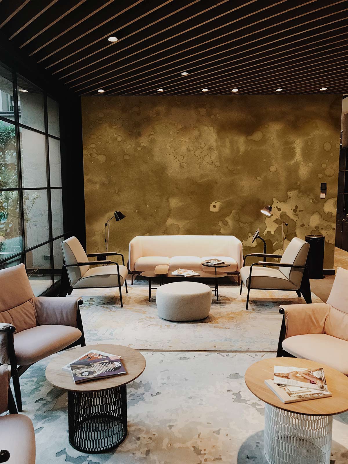 Fill your place with the effect of the golden concrete past, add this wallpaper mural at your home and make it filled with elegancy and luxury. Contemplate the elegancy of this golden past pattern that makes a nice depth and texture at the design and will add the authenticity to your Livingroom with classic brown wooden furnishing that will take your place to next level and will feel the perfection with this design at your home.