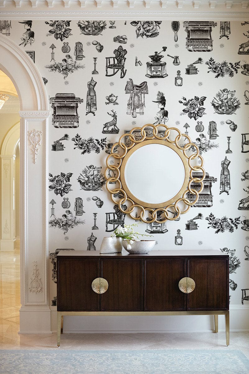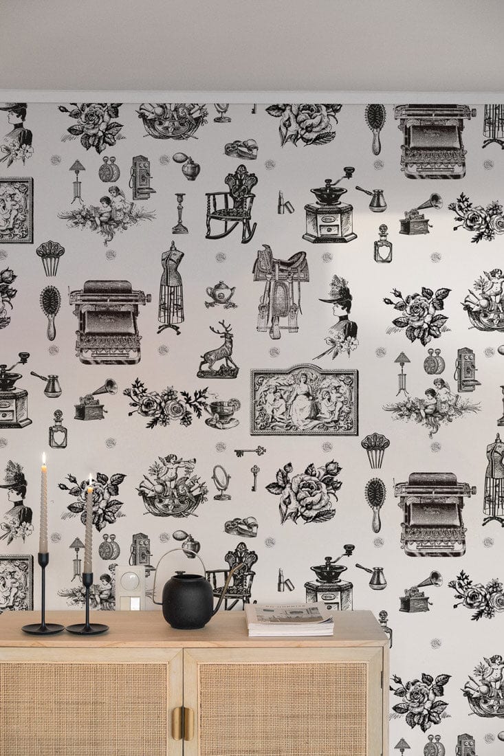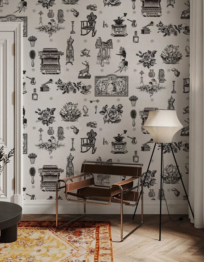 Immerse your interiors with the Vintage Elegance Collection Mural Wallpaper, an exquisite tapestry of timeless charm and detailed artistry. This design features intricate illustrations of classical motifs, evoking an air of sophistication and nostalgia. The subtle grey and cream palette adds a refined touch, seamlessly melding with both contemporary and traditional spaces, whether as a statement wall or an accent to complement your decor.