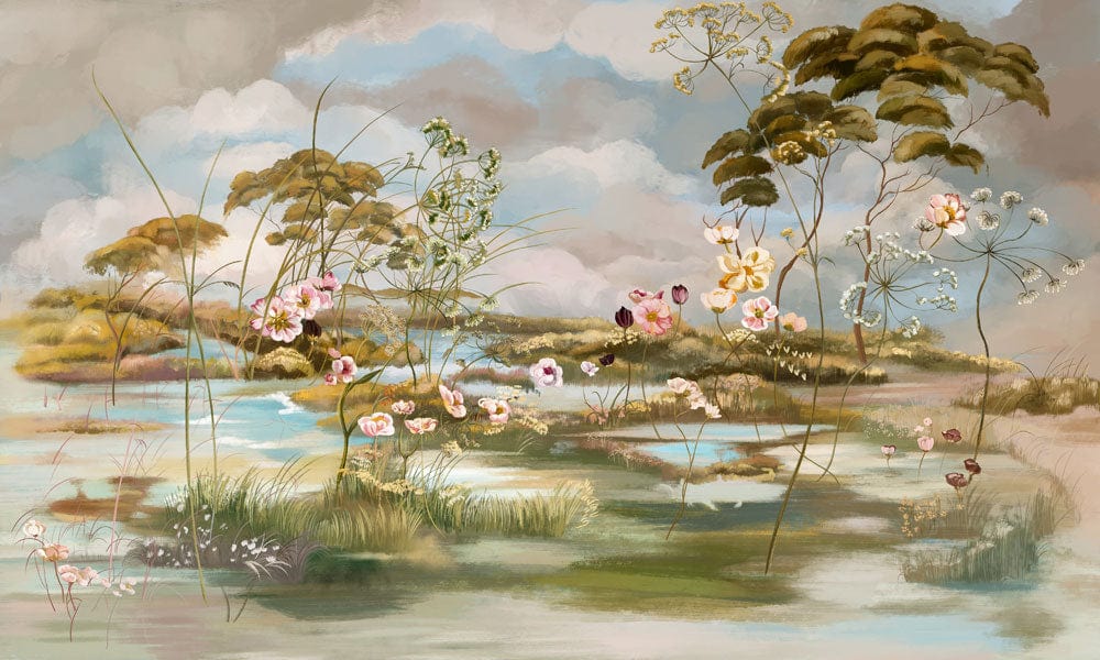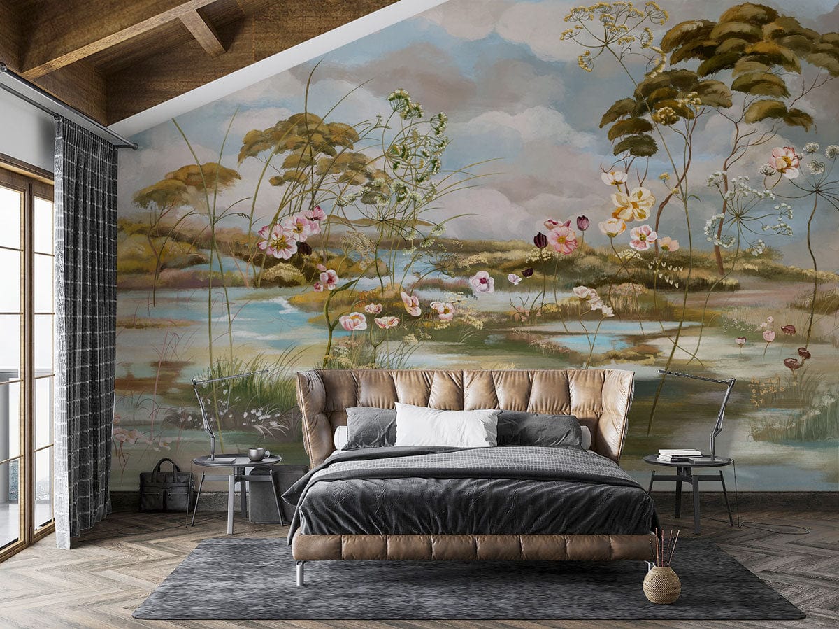 Bring some festive brightness into your home with this聽floral wallpaper mural! This Vintage Flower Wallpaper Mural聽may be used in any space to provide the necessary natural and tranquil atmosphere. It includes a flower garden on a beautiful old pond. Your dining area and kitchen will be more aesthetically attractive with this image of a lovely green environment, and you'll feel pleased and peaceful every time you can see it.