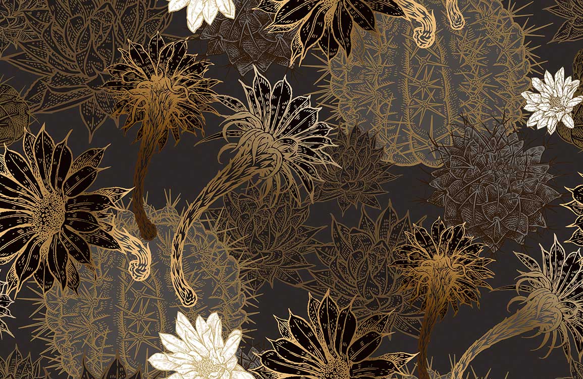 Add a touch of glamour to your walls with this eye-catching vintage flower wallpaper mural. The spellbinding motifs of flower in gold accents, complete with the details on the petals, make it a sight to behold. Decorate your living room with this consummate refinement that spells pure luxury. Impress your guests with this masterpiece of a wall mural.