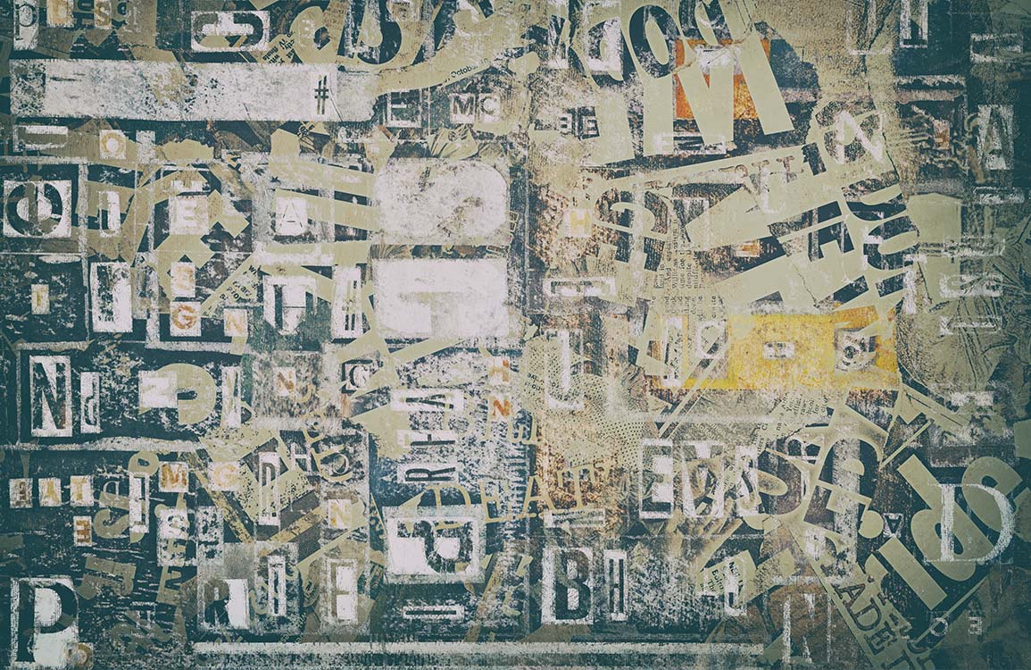 The Vintage Font Wallpaper Mural captures an eclectic tapestry of letters and numbers, artfully layered in a distressed collage. Its muted tones of olive and ochre intertwine with charcoal black, creating an ambience that speaks of time-worn sophistication. This mural blends seamlessly into various settings, where its unique interplay of textures and shapes adds a sense of depth and artistic flair.