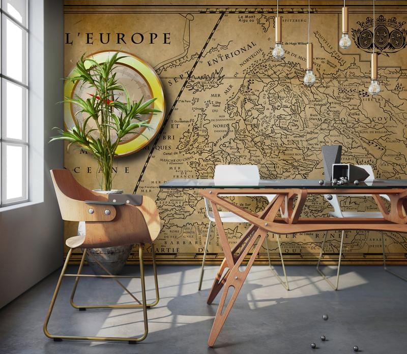 Feel sophisticated and knowledgeable with this map of Europe wallpaper mural. Unlike other 'vintage' maps, this wall mural has all the countries in Europe that we know about today included. The 'vintage' part is merely a time-stained effect to give it a classier edge. Perfect wall mural for your home office and bedroom.