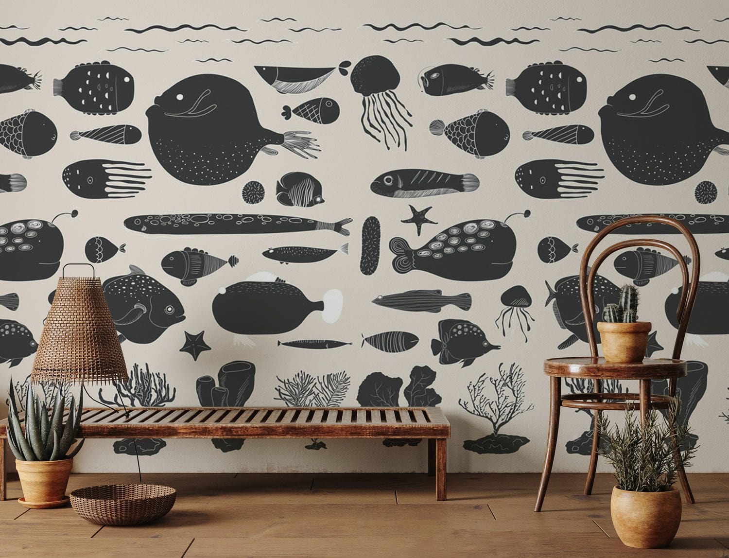 Dive into an oceanic retreat with this Marine Animal Wallpaper Mural, boasting an intricate design of whimsical sea creatures and delicate corals. The seamless harmony between elegant illustrations and a soothing palette makes it ideal for distinctive interior spaces. Its artistic flair invites reflection and curiosity, perfect for adding a layer of sophistication and charm.