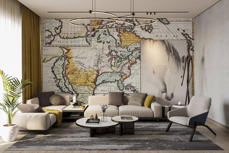 Get to know more about North America with this custom-made map wallpaper mural. This vintage style map of North America is a fantastic background for your rooms. All of the areas and contries and regions of have been clearly detailed in this map. Suitable for all your home office, bedroom and hallway.