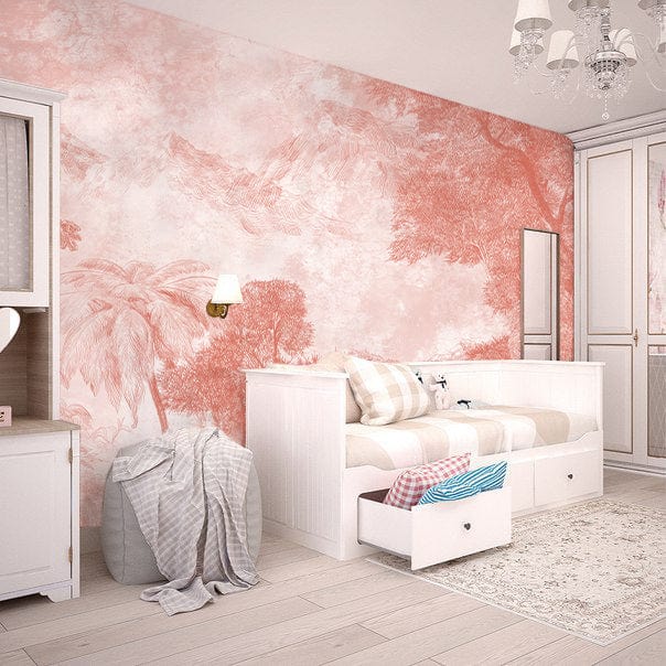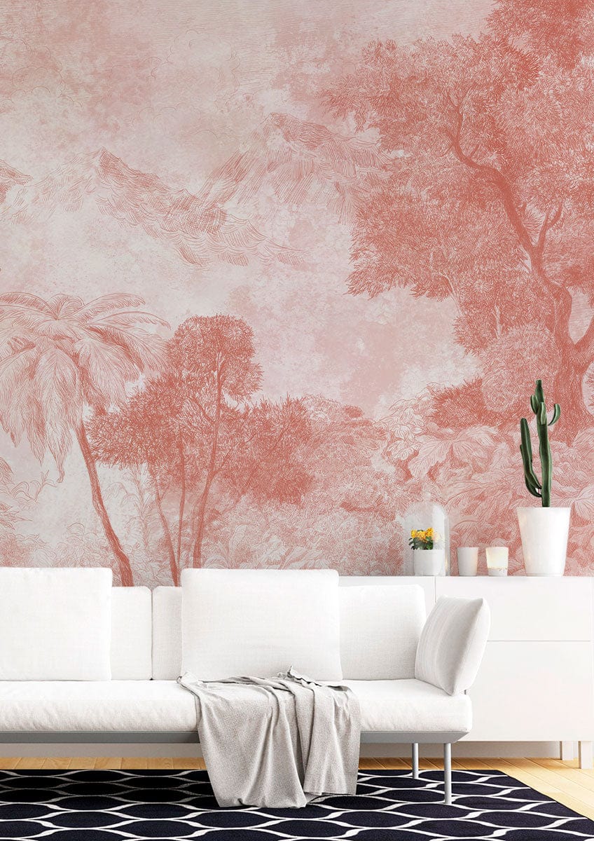 Step into a serene escape with the Vintage Tropical Peach Jungle Forest wallpaper. Its intricate depiction of lush foliage rendered in soft, warm tones creates a sophisticated backdrop that evokes both nostalgia and tranquillity. The detailed artistry invites the eye to explore its textures, while the muted palette provides versatility, seamlessly complementing both traditional and contemporary spaces.