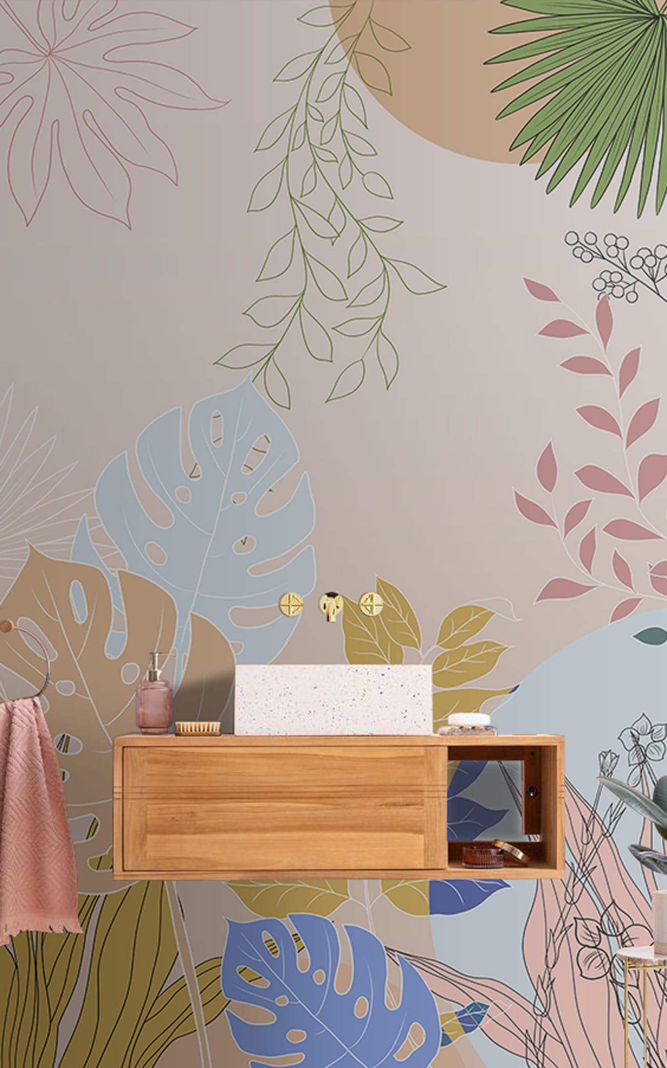 Welcome fresh tropicals into your space full of stylish tone and detail, with the colourful Tropical Minimalist Wallpaper Mural. This hand-drawn illustration features a subtle paper texture, adding the the realistic feel of the design. Perfect for minimalist tropical living rooms or bathrooms, or even a sophisticated children's nursery; whatever your preference, the muted palette will work in a range of spaces.