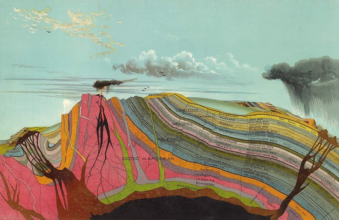 The Volcano Structure Wallpaper Mural offers an exquisite portrayal of nature's grandeur, featuring a striking geological illustration of a volcanic landscape. The mural's intricate layering embodies a sense of movement and depth, with rich textures that evoke a timeless artistic quality. Its vibrant palette and exquisite details make it an elegant choice for interiors, creating a captivating focal point that effortlessly blends with both contemporary and classic decor.