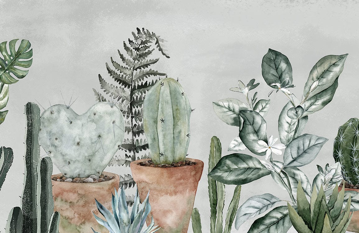 Immerse your space in the serene beauty of desert flora with the Watercolour Cactus Wallpaper Mural. This mural features an exquisite array of artistically rendered cacti and succulents, capturing rich textures and soft, organic lines. Perfect for creating a tranquil and sophisticated ambience, this mural effortlessly complements both modern and rustic settings.